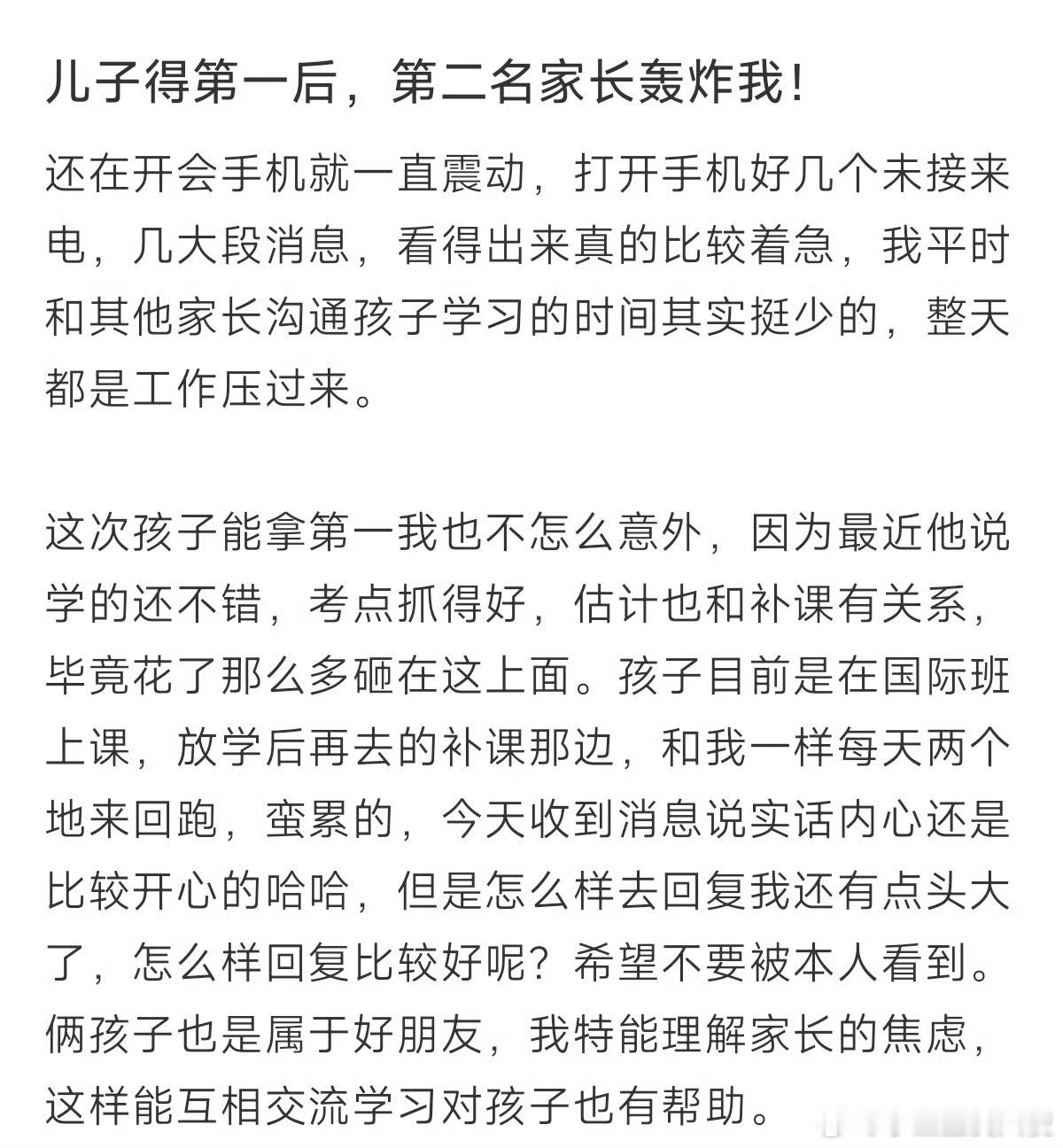 儿子考了第一后,第二名家长一直试探我