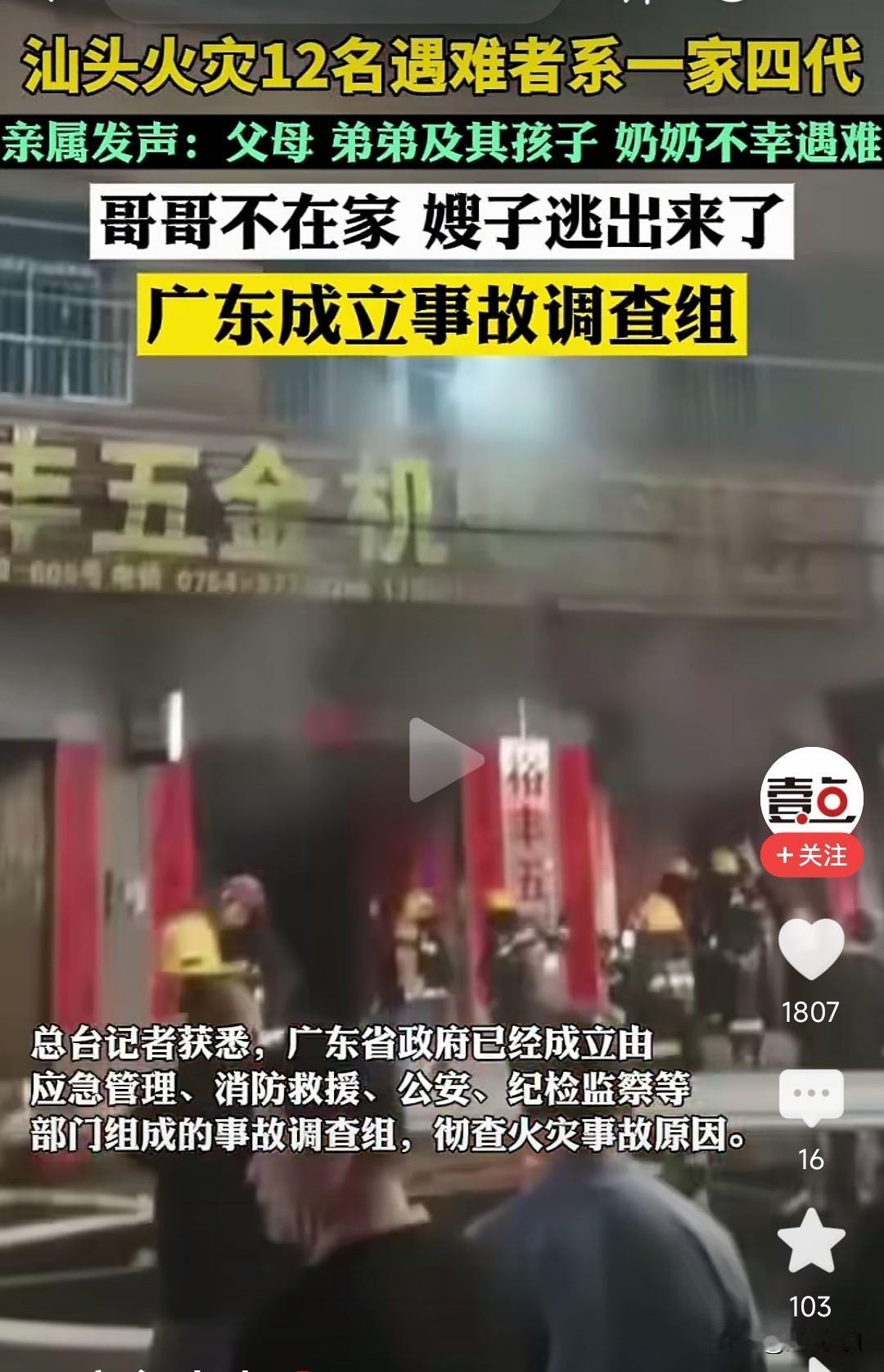 广东汕头这次火灾给我们深刻教训,大家看看这火势着的很快,一家四代12人遇难。 在视频中可以看出是一家商铺门店晚上着火,而且遇难人多,这也是商铺门面房住人太多,商铺里东西多,有些货物遇火就着,堆放混乱,管理不到位容易引起火灾。 商铺门面房不应该住这么多人,商铺必定是做生意的地方,和住户房子不一样。就像货车一样,货车上面拉货就不能坐人,坐人就人货混载,就包括货车的车头驾驶室,大挂车只能坐两个人,就怕大货车出事。 这样的门面房应该及时排除隐患,平时做饭用火,用电线路有没有老化,一般商铺门面房年头多了,电线容易老化,冬天用电取暖容易出现问题,总而言之商铺门面房的安全不能忽视。 致富千年功,火灾一场空,这是真话。
