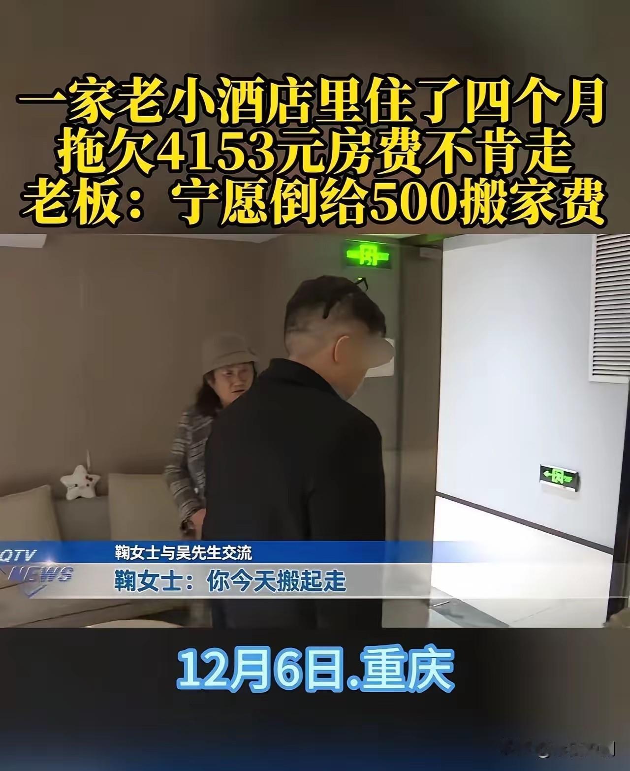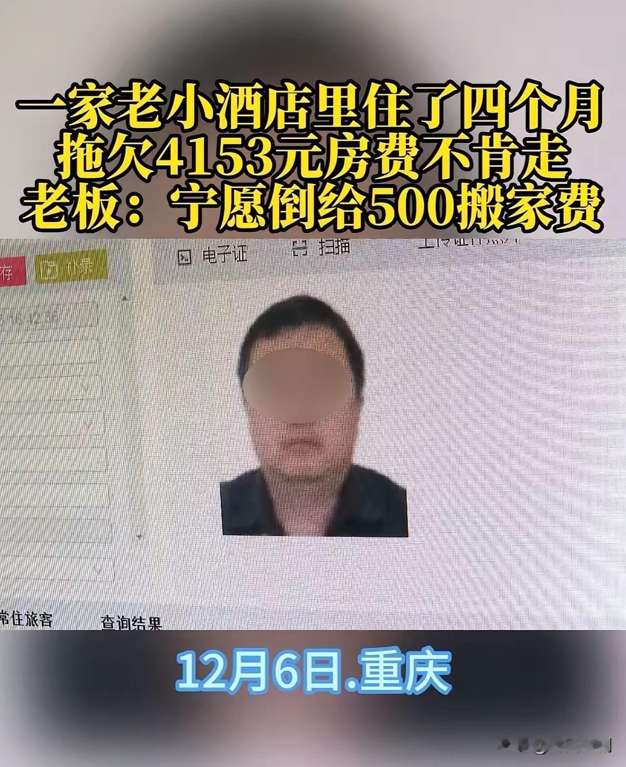 在重庆,有一家老小在某酒店连续住了四个月之久,竟拖欠了4153元房费,还拒绝搬离,此等行径着实令人震惊。这一事件,既暴露了部分房客的无赖嘴脸,也引发了公众对酒店维权难题的关注。 面对这般情况,酒店老板的态度着实让人感慨。他不仅表示免除房费,还愿倒贴500元当作搬家费,可房客依旧坚决不肯离开。这种“无赖”行为,着实令人愤怒,也让人思考法律与道德的边界。 首先,酒店作为合法经营场所,有权要求房客按约定支付房费并按时退房。房客长时间占用房屋却不付费,明显属于违约行为。酒店理应依法采取措施维护自身权益,比如催缴房费、通知物业,甚至通过法律途径解决问题。在这起事件中,老板展现出了极大的善意与理解,甘愿“倒贴”搬家费,尽显其作为经营者的宽容与善良。 然而,令人遗憾的是,部分房客似乎连基本的诚信和底线都没有,竟以“让你走”为由拒绝离开。这样的行为,不仅扰乱了正常的经营秩序,还损害了行业信誉。网友们纷纷谴责这位“毫无底线”的老赖,认为其行为既不道德,也违反了法律。 能否通过报案解决问题呢?答案是肯定的。法律对非法占用他人财产的行为有明确规定,房东可向公安机关报案并申请强制执行。公安机关有权依法采取措施,驱逐非法占用者,追缴欠款。实际上,法律是维护正常秩序的重要保障,遇到类似情况,房东应及时报警,寻求法律援助。 当然,事前预防也至关重要。酒店应在入住时签订详细合同,明确房费、退房时间和违约责任。一旦发现拖欠情况,要及时催促,必要时采取法律手段,避免事态扩大。与此同时,社会公众也应认识到,诚信是社会的基石,无赖行为不仅会伤害他人,最终也会损害自己。 总之,这起事件反映出一些人缺乏诚信和底线意识的问题。作为经营者,要坚守合法权益,依法维权;作为社会公众,要支持法律的公正执行。只有大家共同努力,才能营造一个诚信、和谐的社会环境。