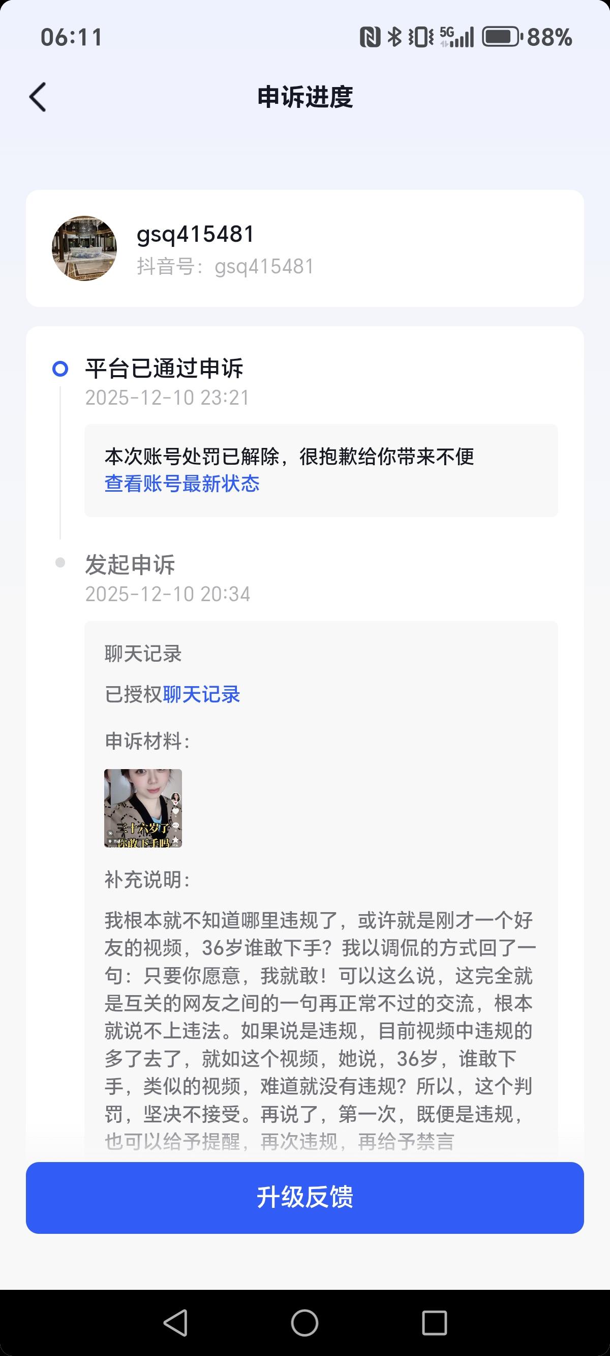 一般人的认知是,只要不违反平台规定,就不会封号。然而,在抖音,我昨天在调侃一个视频提问:我36岁,你敢下手吗?我调侃了一句,“只要你愿意,我就敢!”就这句调侃,抖音平台立刻对我进行了处罚,说是违规严重,将我禁言30天。我立马进行了投诉:“我根本就不知道哪里违规了,或许就是刚才一个好友的视频,36岁谁敢下手?我以调侃的方式回了一句:只要你愿意,我就敢!可以这么说,这完全就是互关的网友之间的一句再正常不过的交流,根本就说不上违法。如果说是违规,目前视频中违规的多了去了,就如这个视频,她说,36岁,谁敢下手,类似的视频,难道就没有违规?所以,这个判罚,坚决不接受。再说了,第一次,既便是违规, 也可以给予提醒,再次违规,再给予禁言”三小时后,平台对我的违规作了解禁,并被我进行评价,我点击了不满意。你先打我一巴掌,再给我一颗糖,再让我说你好!这不是强盗逻辑,又是什么?