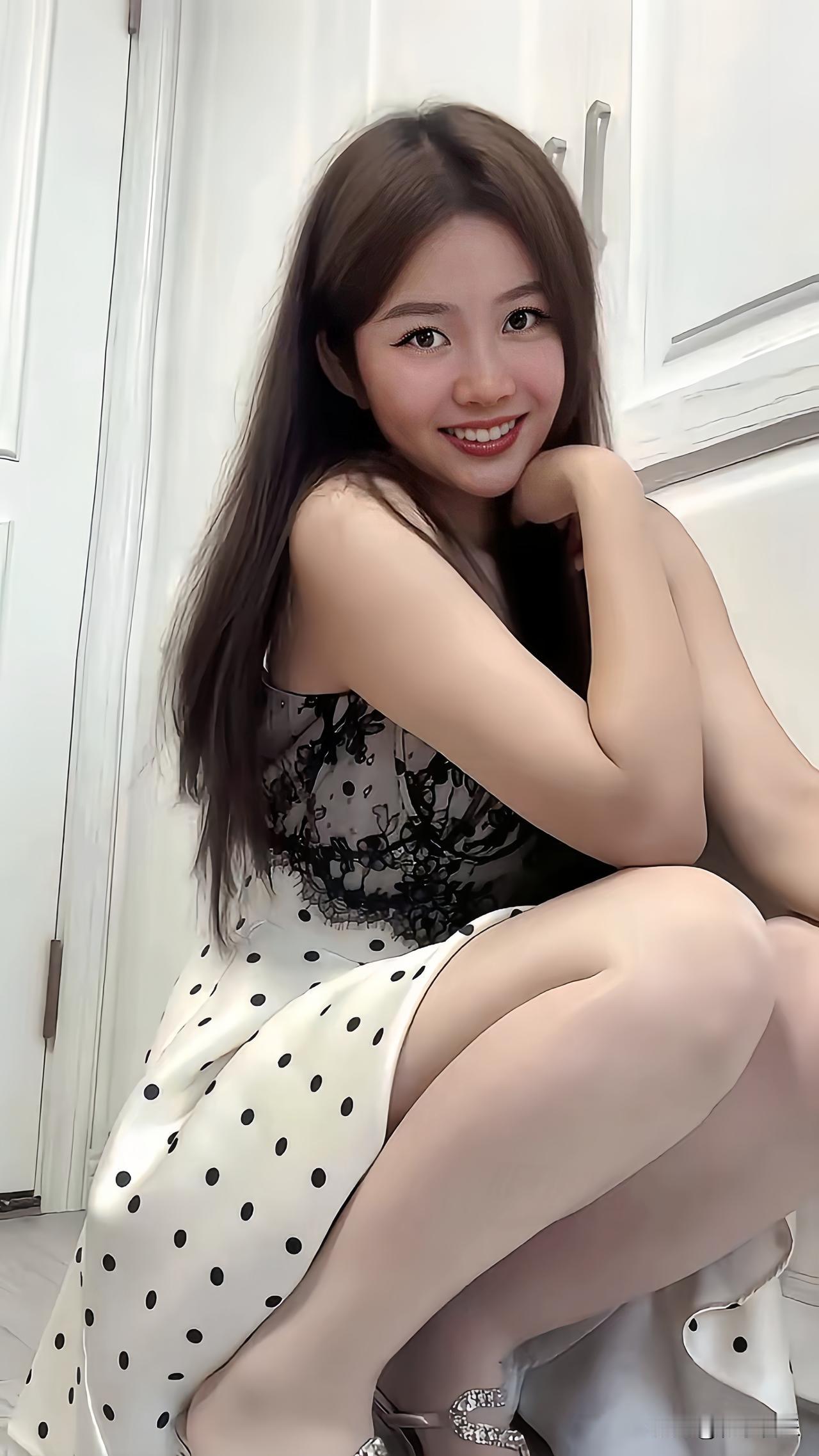黑白波点裙少女席地而坐,眉眼弯弯,笑容甜得要溢出屏幕啦。少女风写真照 波点辣妹 波点少女写真 分享今日随手一拍 用一张图片来记录生活 手机随手拍 记录美好点滴 分享一张最近随手拍的照片