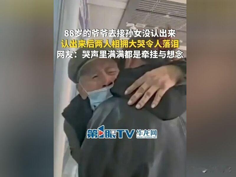 老人接孙女从认不出到相拥大哭 近日,陕西一88岁爷爷机场接孙女几度认不出,最后相拥大哭的一幕让人泪目。网友:爷爷在找记忆中的宝贝孙女。