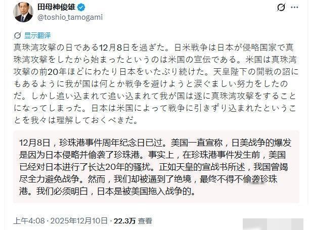 彻底没救了,被洗脑了还是蒙蔽了,竟说珍珠港是“被美国逼的”,自己是“受害者”? 先侵略亚洲、占人领土、屠南京,转头把满手血污说成“委屈”——合着你满世界放火,别人拦着就是“欺负”? 天皇要是真“为和平流泪”,怎会由着军国主义炸珍珠港、祸乱东亚?不承认侵略、装受害者,这哪是“委屈”,是军国主义阴魂在探头! 历史不容否认,这种歪理,全世界都看得清! 军事