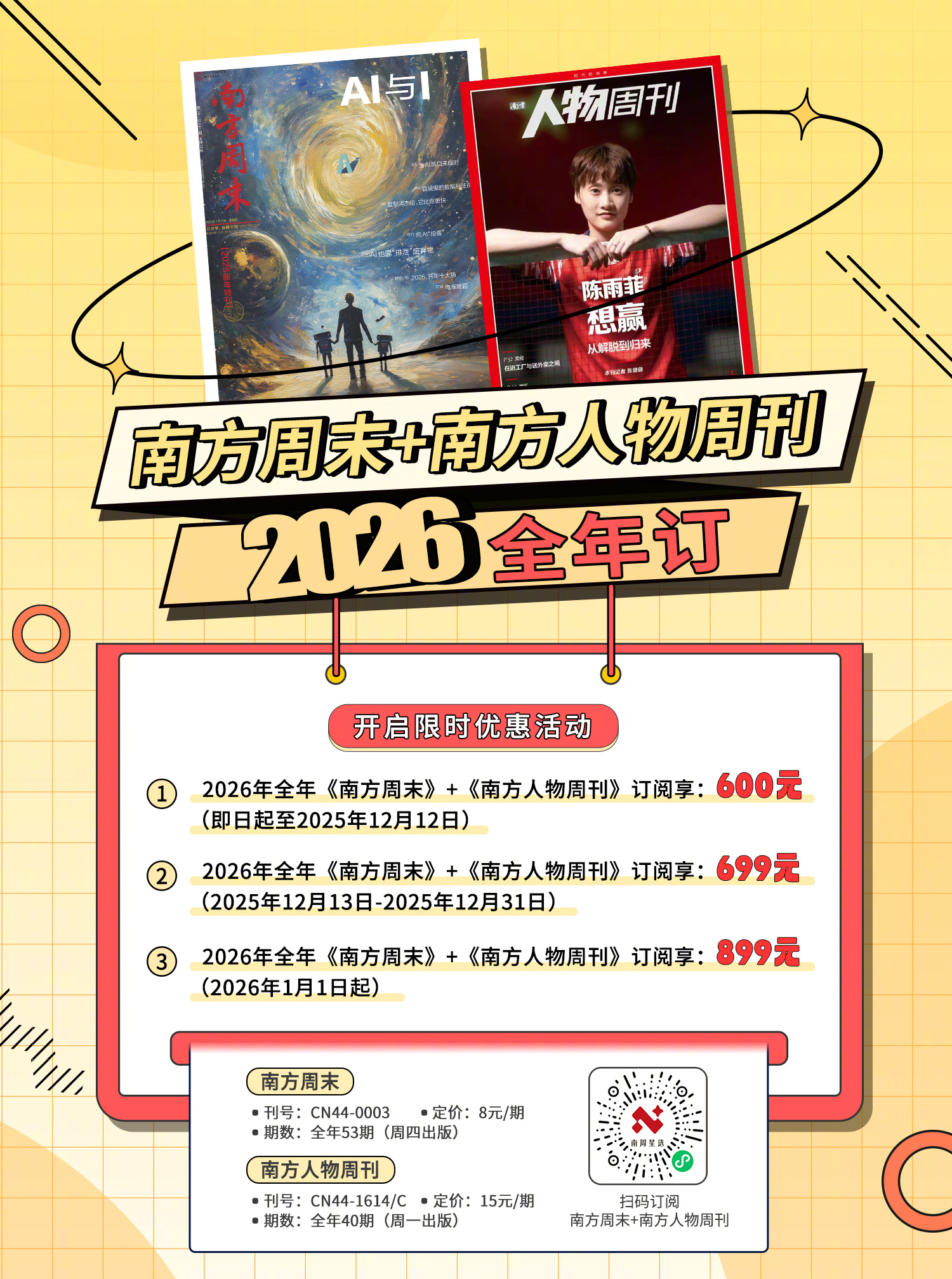 【选对读物】在媒介飞速发展的当下,很多泛读不过是在同质化讯息的漩涡里打转,选对读物,远比盲目泛读重要得多。请审慎挑选信息源,并保持深度思考的能力。在这里,我们诚邀您共阅《南方周末》《南方人物周刊》,一同重塑阅读质量,于庸常信息中锚取清醒认知。2026年订阅限时礼赠已上线,点击下方链接进入活动专场(商城链接:网页链接 )#南方周末##南方人物周刊##阅读#