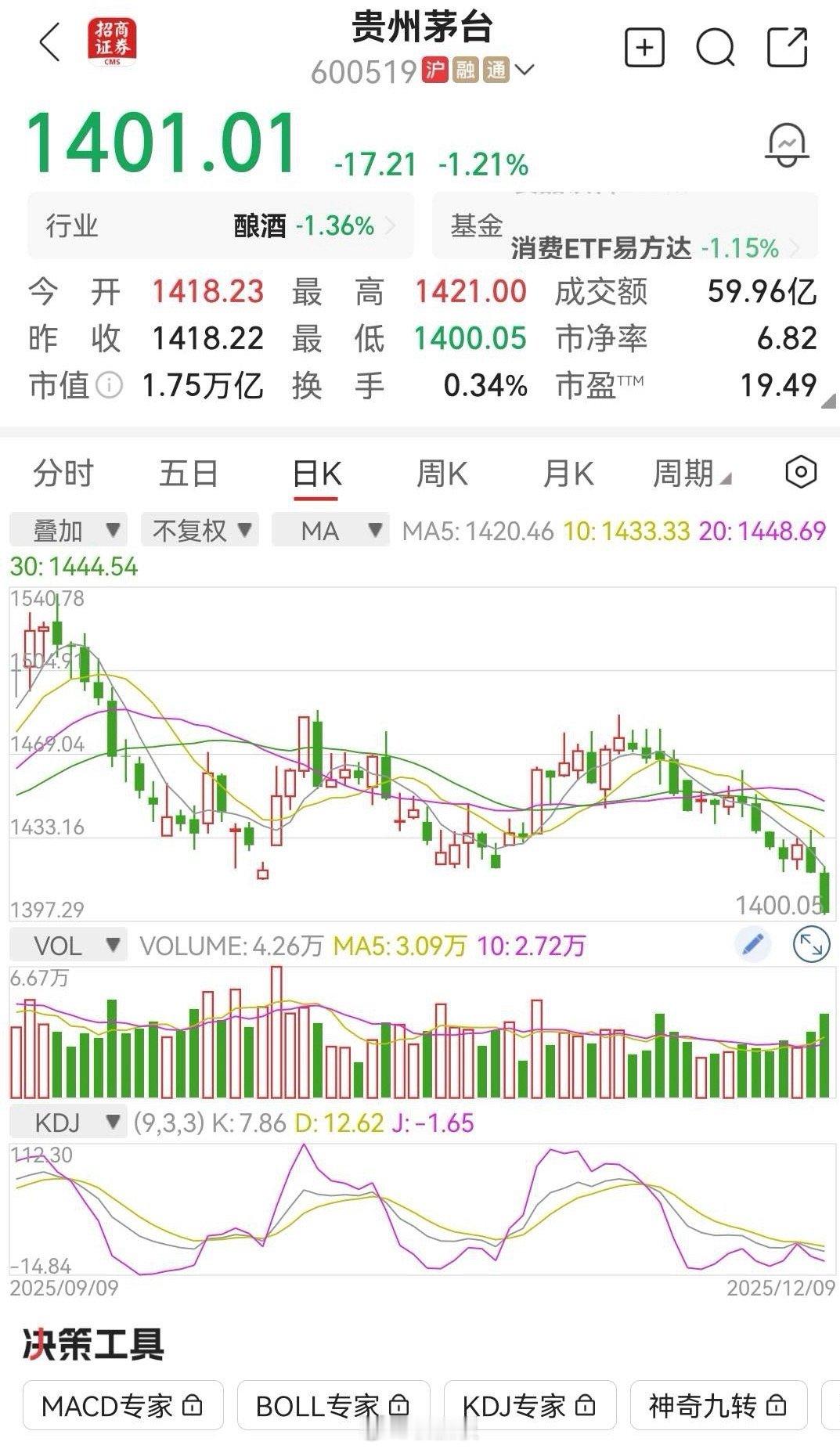 有位网友说,2022年他在1900多元的价格买入贵州茅台股票,三年过去了,现在股