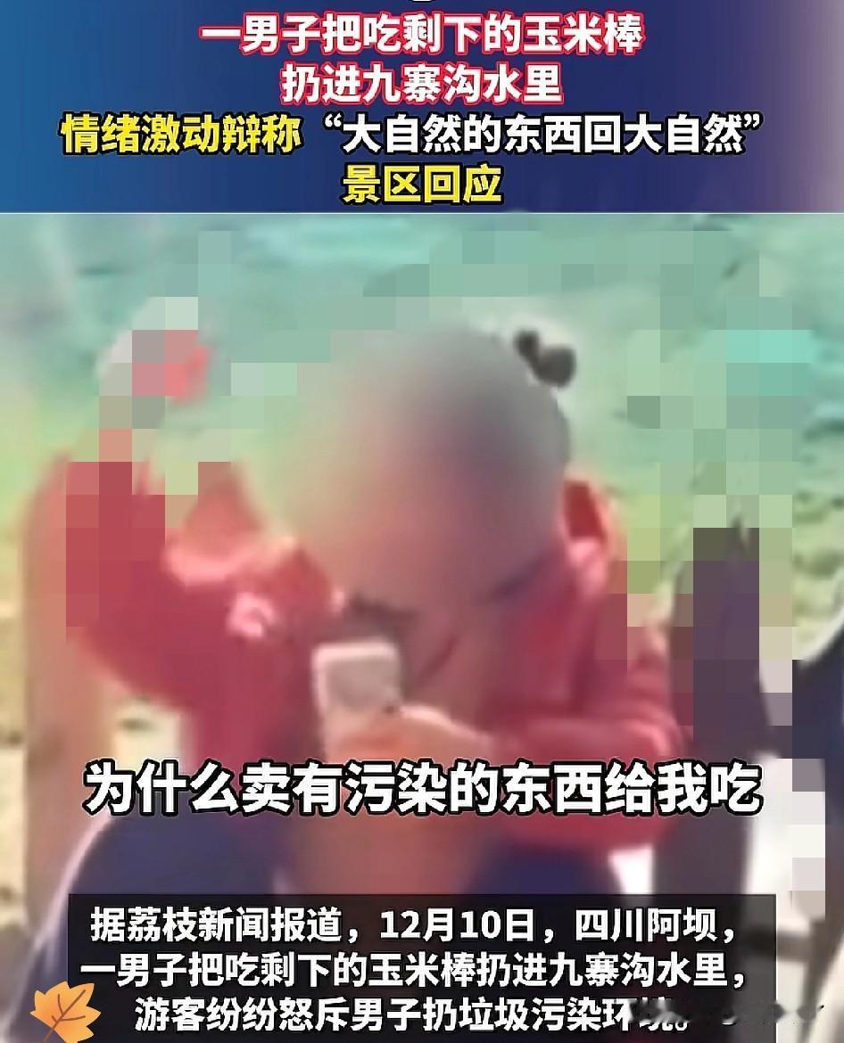 四川一男子去九寨沟旅游,竟然把吃剩下的玉米棒,直接扔进九寨沟水里,被游客怒斥后不仅不羞愧,还扯着嗓子强词夺理! 他叫嚣着“玉米是大自然的东西,扔回大自然没错”,甚至反问景区为啥卖“有污染”的玉米! 这哪是什么“回归自然”,分明是偷换概念的无赖行径! 玉米棒一旦被食用丢弃,就成了该妥善处理的垃圾,扔进湖里既破坏美景,还可能让水生生物误食,危害脆弱的生态环境! 九寨沟的水清得能看见湖底石头,那是靠严格保护才有的世界级美景,不是谁都能糟蹋的“私人垃圾桶”! 家里的坏习惯别往公共景区带,素质这东西,真不是光长年纪就能有的! 你们对此事怎么看?