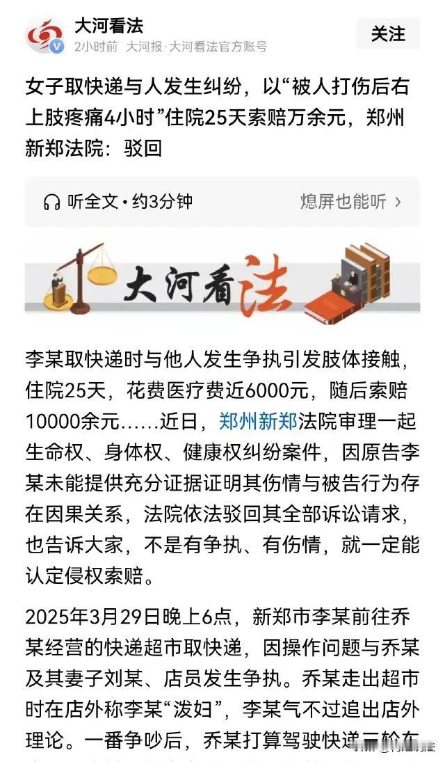 生活中,琐碎的矛盾似乎无处不在,尤其是在快递这个几乎触及每个人生活细节的行业里。河南新郑的一起快递取件纠纷,因为一场争执,竟然演变成了令人瞠目结舌的索赔风波。 事情起因于李某去取快递时,与快递老板乔某发生口角。事情本该告一段落,然而乔某试图骑着三轮车离开时,被李某拦下,顿时火药味涨到了顶点。乔某的妻子赶忙上前拉开二人,却惹得李某报警,声称自己被打伤,甚至以胳膊疼痛为由住了25天医院。 这已是让人费解,却更加戏剧性的是,事后李某将矛头指向乔某夫妇,提起诉讼,索要医疗费、护理费等共计一万多元。这样的结局,让人不禁要问:是伤痛的真实存在,还是利益驱使下的“过度维权”? 这起事件的背后,有着我们不得不思考的社会现实: 首先,快递行业因服务频繁,人与人之间矛盾容易激化。一次普通的取件纠纷,竟演变成相互举报、诉讼交锋,反映出现代人的情绪管理和冲突解决机制亟待完善。 其次,在法律与人情的边缘,如何把握“维权”的度,避免“小事变大事”,更是公众需深思的问题。维权无可厚非,但过度索赔是否会成为一种新的“软暴力”,让原本简单的冲突变得复杂难解? 最后,社会互动中信任缺失的影子愈发明显。双方的对立,不仅是那一刻的冲突,更是心底冰冷疏离的人情断裂。如何修复人与人之间的基本信任,或许是每个人都必须面对的课题。 网友们看完这事热议:“为了个快递吵成这样,真是小题大做。” “住院25天凭什么?真让人怀疑。” “法律保护应当公正,但不能让制度被滥用。” 其实,这不仅是快递行业的缩影,更是当代社会人与人之间相处之道的警钟。让我们相信,理性沟通始终是解决矛盾的最好钥匙,冲动和过度维权只会让生活更加复杂。 快递纠纷 一碗面纠纷