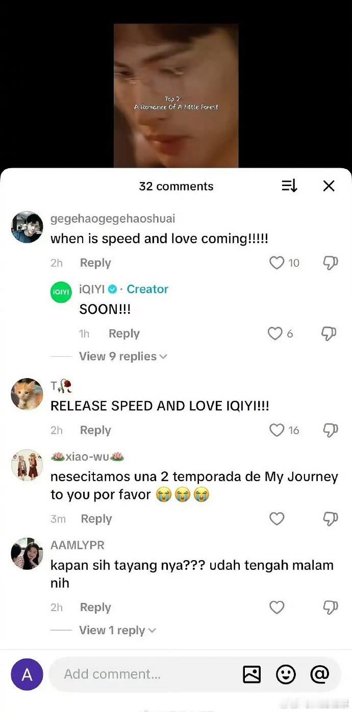 爱奇艺回应了双轨播出时间双轨soon海外粉丝的急切都写在评论里,爱奇艺的“SOON”给了准信,坐等《双轨》开启全球追剧潮!