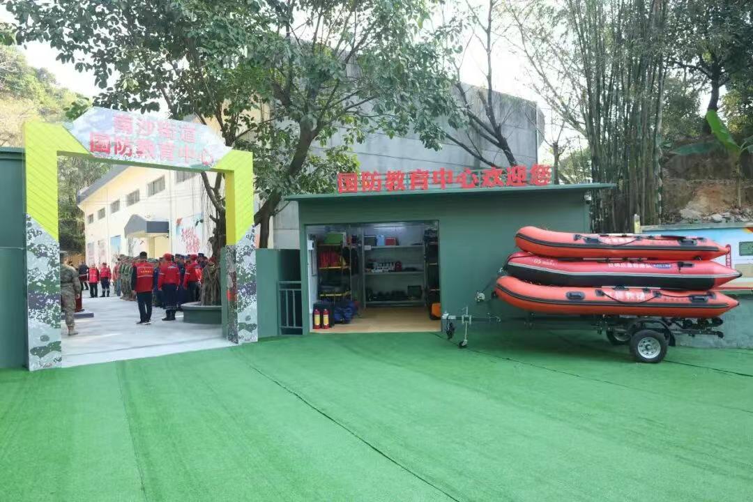 【南沙首个镇街级国防教育中心揭牌】12月9日,南沙街道坦头村内“迷彩绿”“应急红”“消防蓝”齐聚一堂,共同见证南沙街道国防教育中心正式揭牌。一同亮相的还有南沙街道应急救援培训中心、南沙区红棉退役军人应急救援中心和南沙街道专职消防队训练基地。南沙街道国防教育中心(以下简称“中心”)总面积约1000平方米,分为室内、室外两大区域,集理论教学、实践体验、文化展示于一体。中心拥有约100平方米的室内课室,承担国防理论教学与科技实践课程,并配备应急救援、射击理论等互动模块。中心同时建设了三个主题展室——军史历程展室以八一南昌起义为起点,介绍了中国人民解放军发展历程;军种装备展室介绍了中国人民解放军现有军种,并陈列部分武器装备模型;红色南沙展室则以虎门销烟历史为核心,展示南沙人民抗争侵略者的英雄事迹。 为更好管理、养护各类器械,中心建设了装备仓库,存放仿真枪械、战术装备、应急救援装备等教学用具,保障射击训练、战术模拟等实操课程的专业性。中心在室外建设了规模约680平方米的训练场地,设有射击模拟场、障碍训练区及战地野炊实践区,支持开展射击训练、体能训练、队列训练及障碍训练等系统性训练,强化各方力量的专业素养与团队协作意识。 后续,中心将依托室内外两大区域积极开展国防教育科普活动与青少年军事拓展活动,以分层次、全覆盖的培训模式,提升全社会的安全意识和自救互救能力。