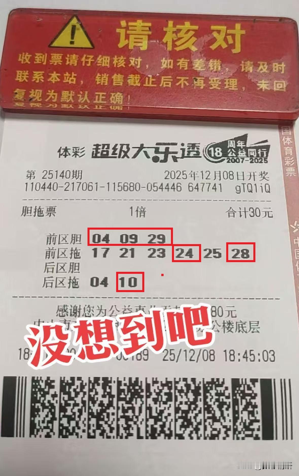 没想到吧,我也没想到,即便你选中了号码,若运气未到,也难揽大奖。 广东一位彩友曾在大乐透第25140期购买了一组胆拖票,没想到这组号码竟中了昨晚开奖的第25141期的二等奖——胆码全中,拖码也命中两个,仅后区差一码“02”。可惜的是,这位彩友没有再坚持多买一期,否则18万多元奖金便已收入囊中。这般际遇,若换作是我,怕是要懊悔终生,毕竟这样的机会,或许再难重来。