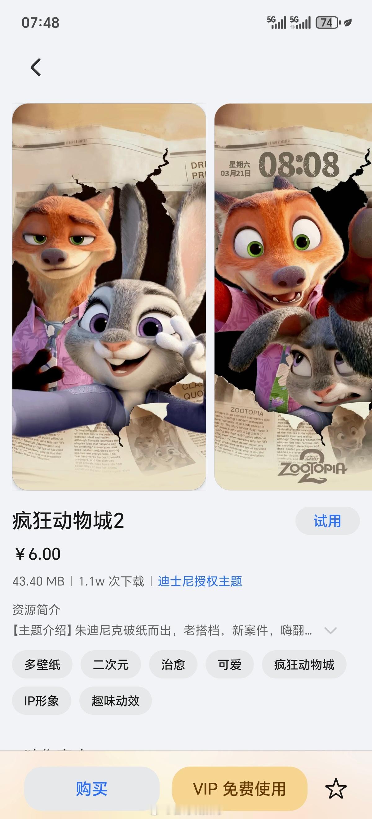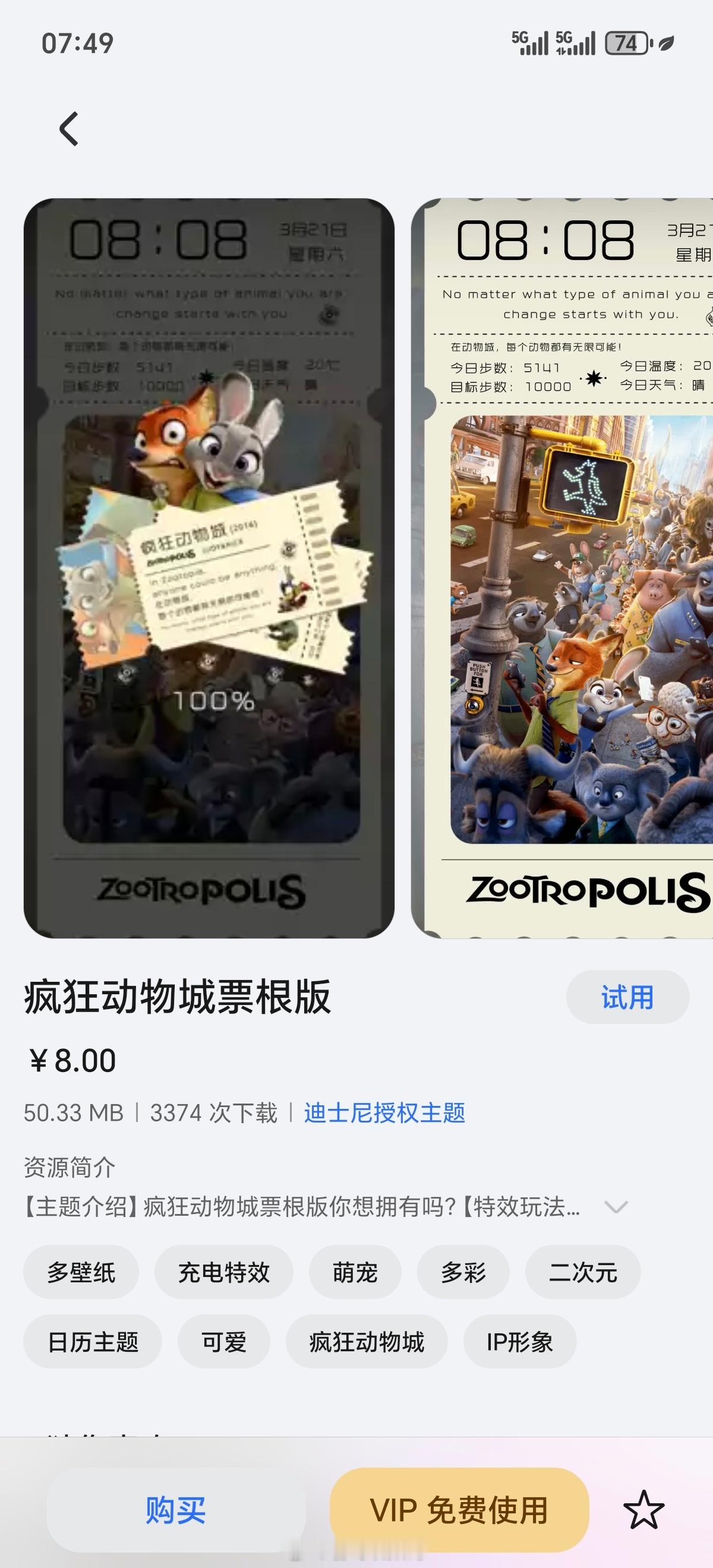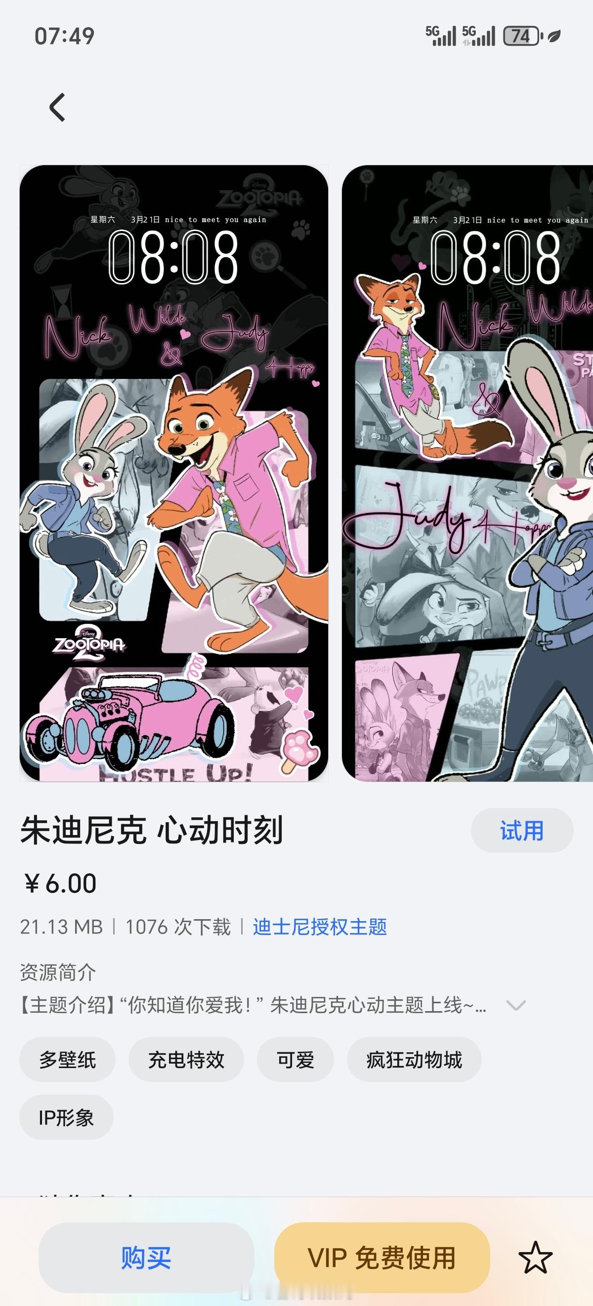 在影院看完《疯狂动物城2》,很喜欢“别着急,美好的东西值得我们等待”这句台词。看到荣耀主题上新《疯狂动物城2》系列迪士尼授权主题,赶紧设置了一个,动态卡通非常传神疯狂动物城2荣耀Magic8