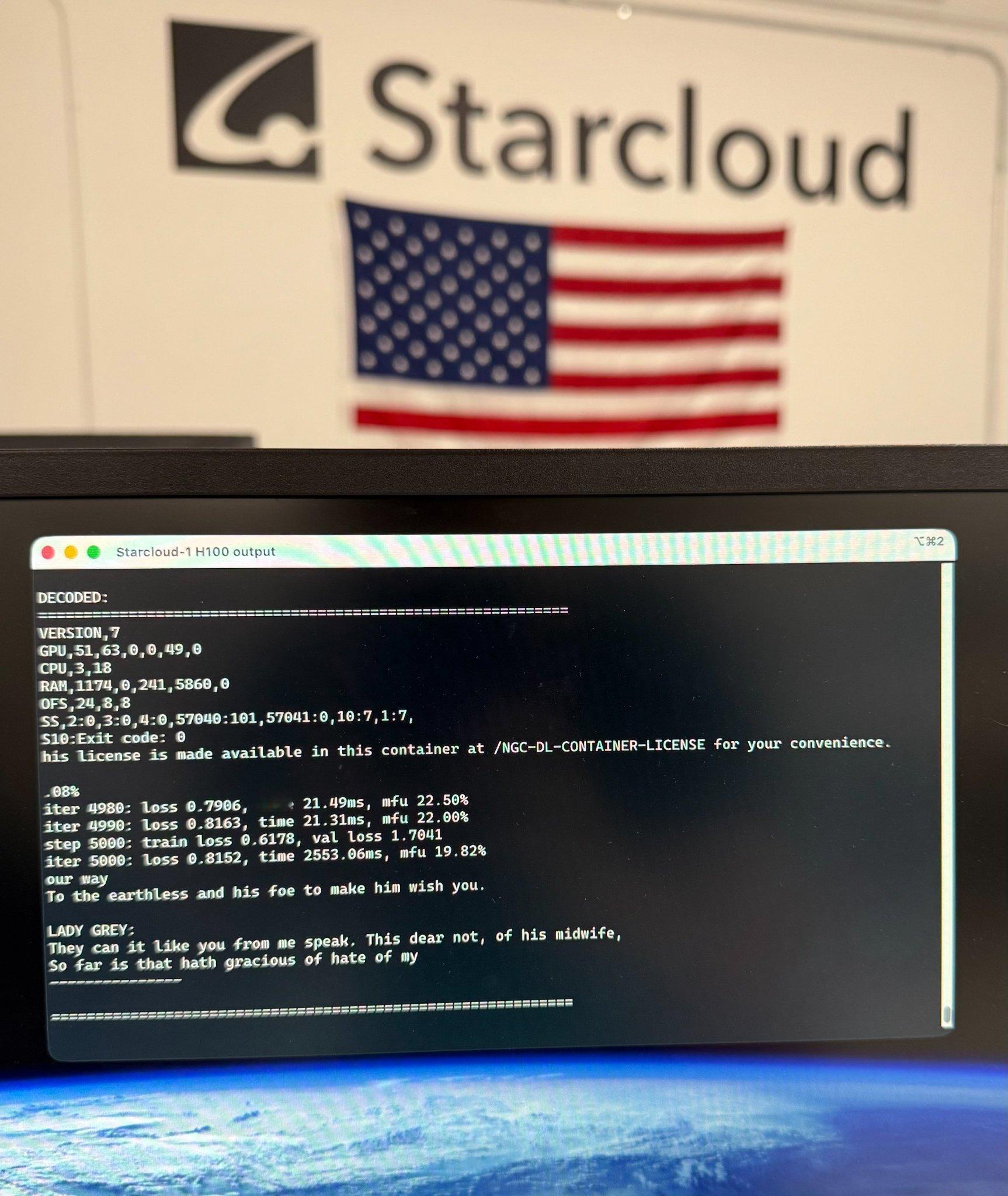第一个在太空中训练的LLMStarcloud上月中旬发射了一颗搭载英伟达H100图形处理单元的卫星,现在拿他训练出了一个Andrej Karpathy的 nano-GPT 模型。