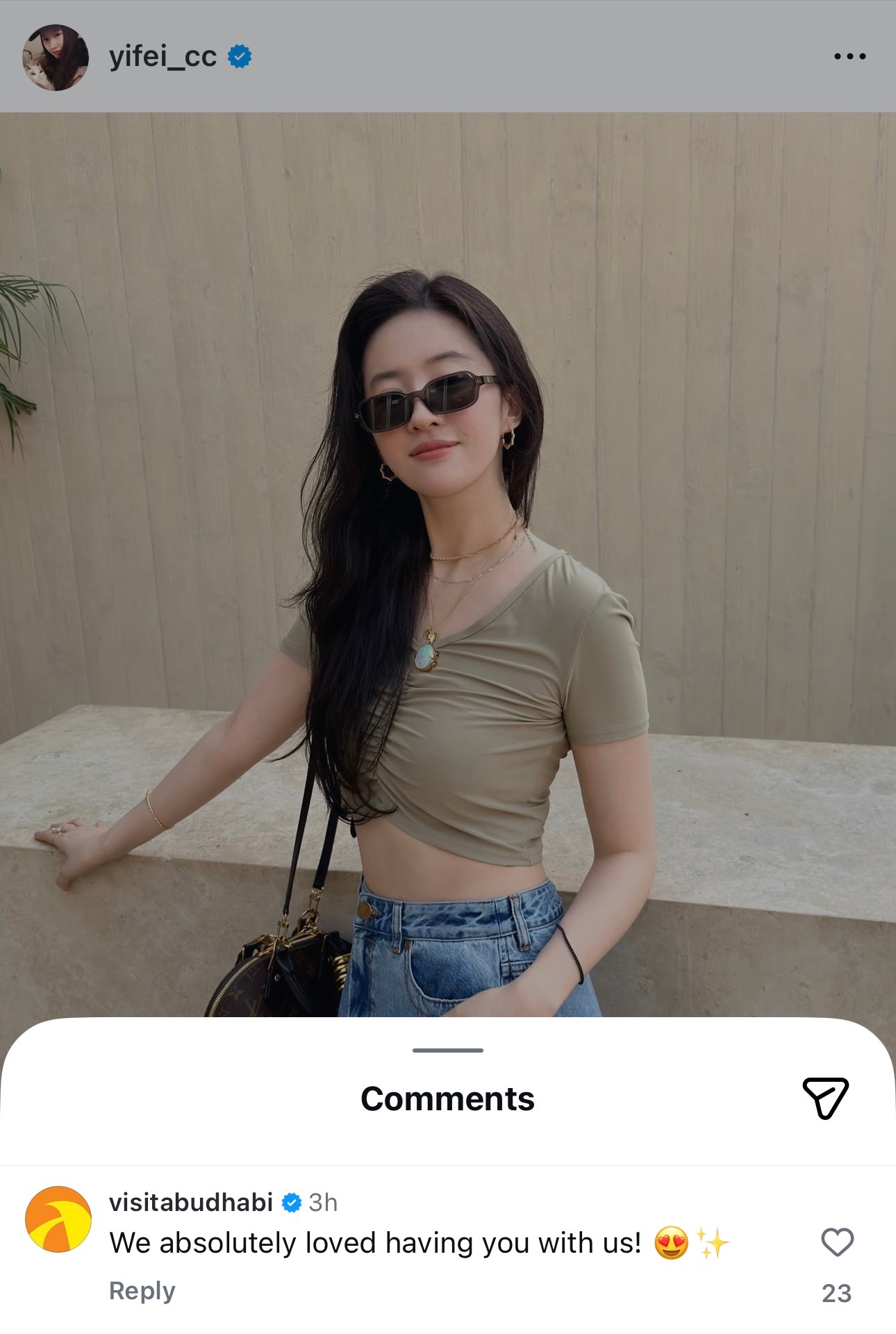 刘亦菲刘亦菲更新Ins,有新图,我们茜茜宝贝太可爱啦!抱住亲一口Visit Abu Dhabi阿布扎比旅游局官方也在cc发布的内容下热烈评论:We absolutely loved having you with us!😍✨而且还转发了cc这条帖子(是官方目前在主页唯三转发的内容)大家多多互动刘亦菲体验阿布扎比代言人