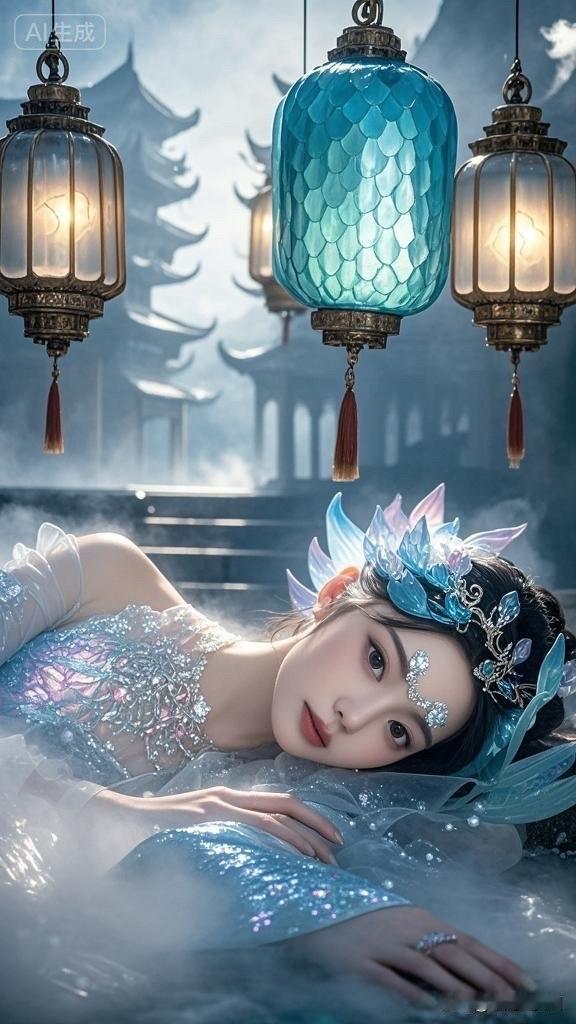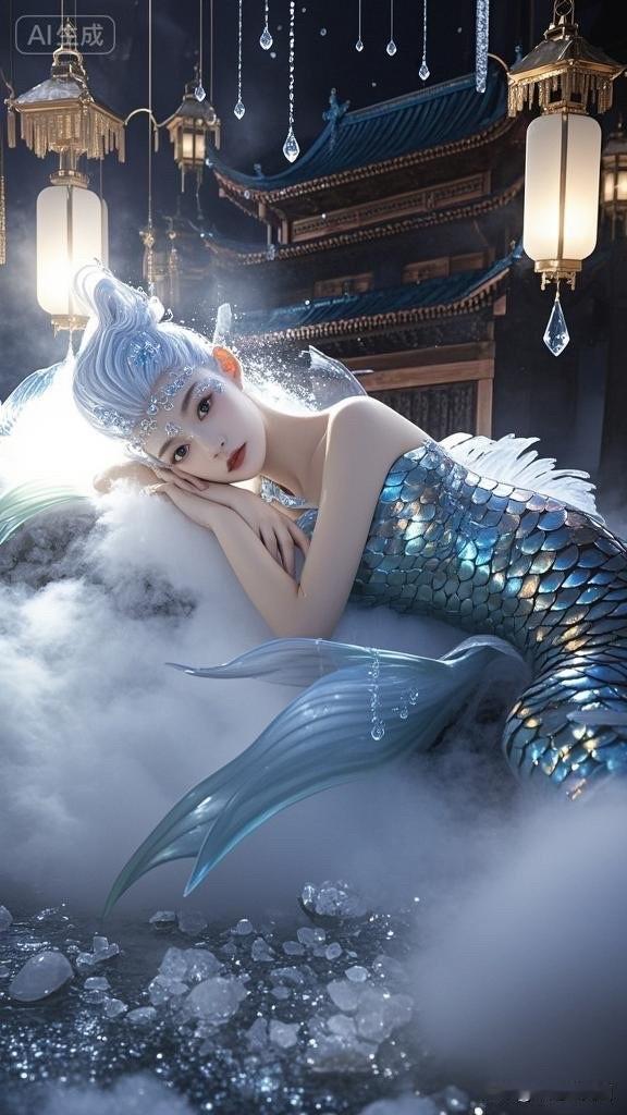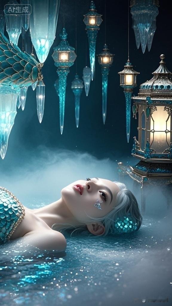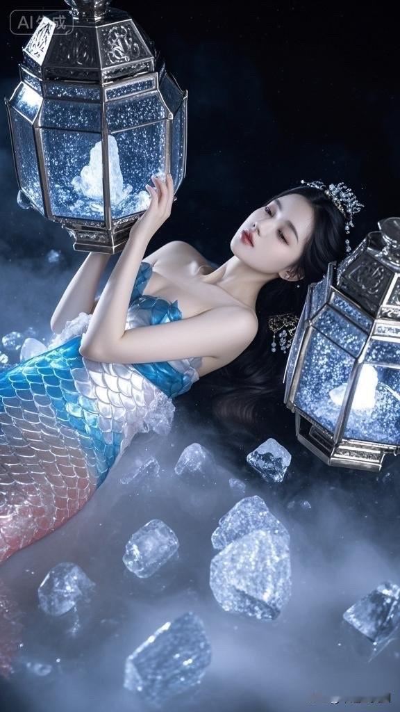 梦幻海底仙境,美人鱼与冰晶灯共舞
