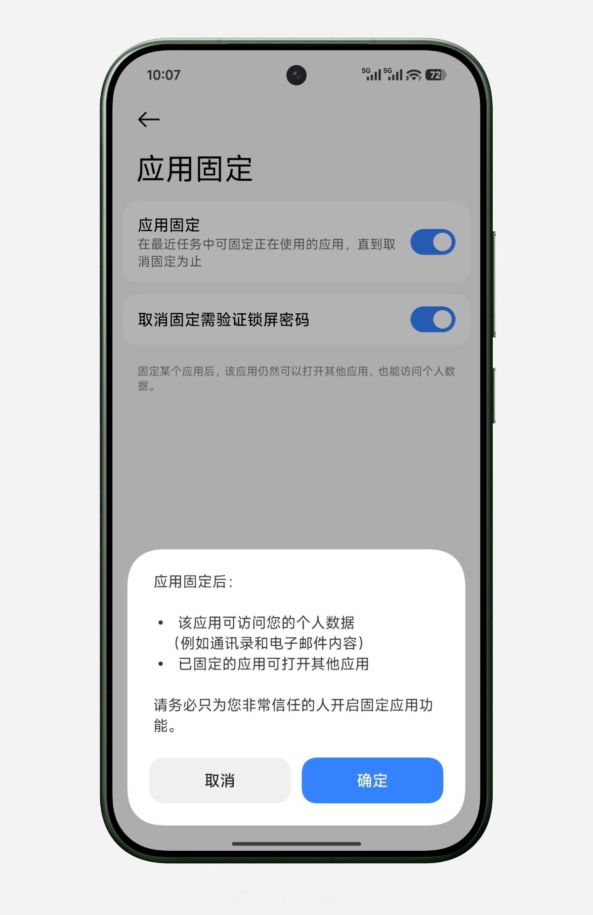 小米澎湃OS3 我多分享一个去除状态栏截屏的方法:开启应用固定。图一,开启应用后截屏。图二,应用固定的文案是不是有优化的空间,是不是应该更通俗易懂?感觉普通用户会较难理解?图三,是大狗分享其他去状态栏截屏的方法。