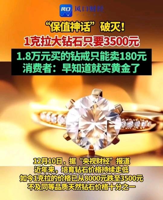1克拉大钻石3500元?那是河南产的培育钻石,纯纯的国货之光。技术一突破,产量暴增,价格自然打成了“白菜价”。 以前的钻石价格确实虚高,被“爱情恒久远”的营销神话捧上了天。其实它就是一件时尚消费品,一买就贬值,别太指望保值。 与其买钻石不如买黄金,因为黄金是全球硬通货,真金白银更踏实。而钻石的水太深,就图个好看开心,想保值增值,还是黄金更靠谱。钻石行情 河南造钻石 钻石