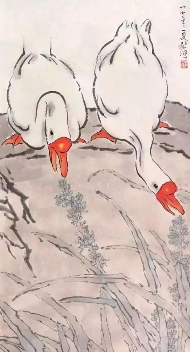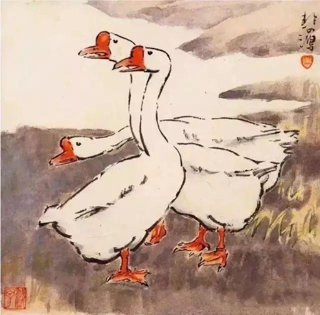 徐悲鸿画鹅。徐悲鸿(1895-1953年),汉族,原名徐寿康,江苏宜兴市屺亭镇人。中国现代画家、美术教育家。大师徐悲鸿是个多面手,不仅画马是一绝,他画各种小动物和禽鸟也别有风趣。这就是中国风遇见艺术