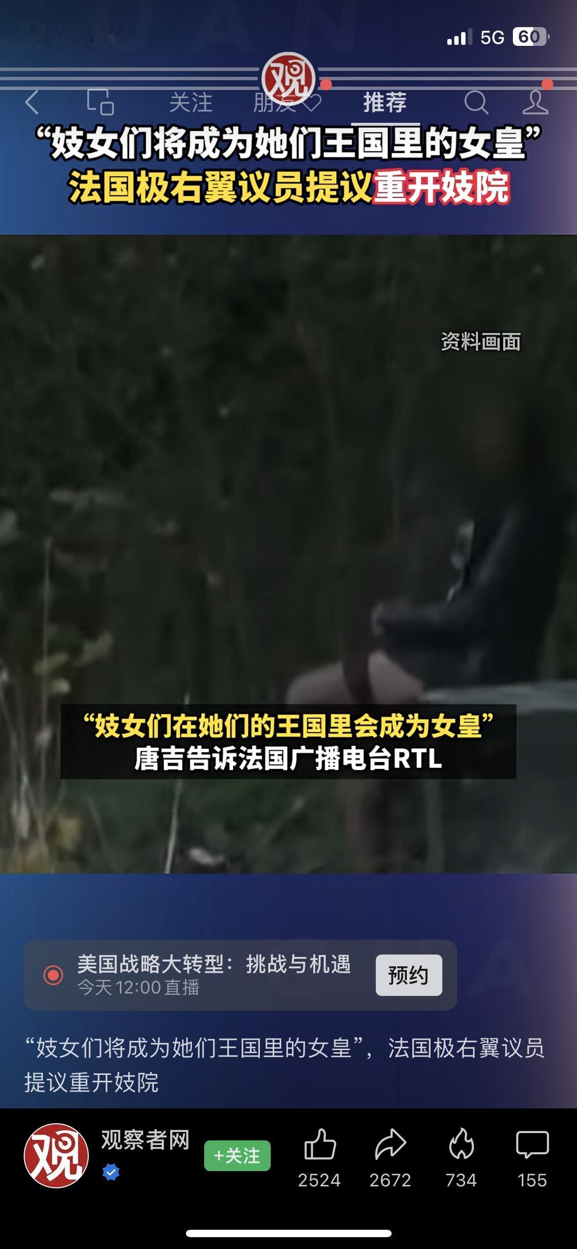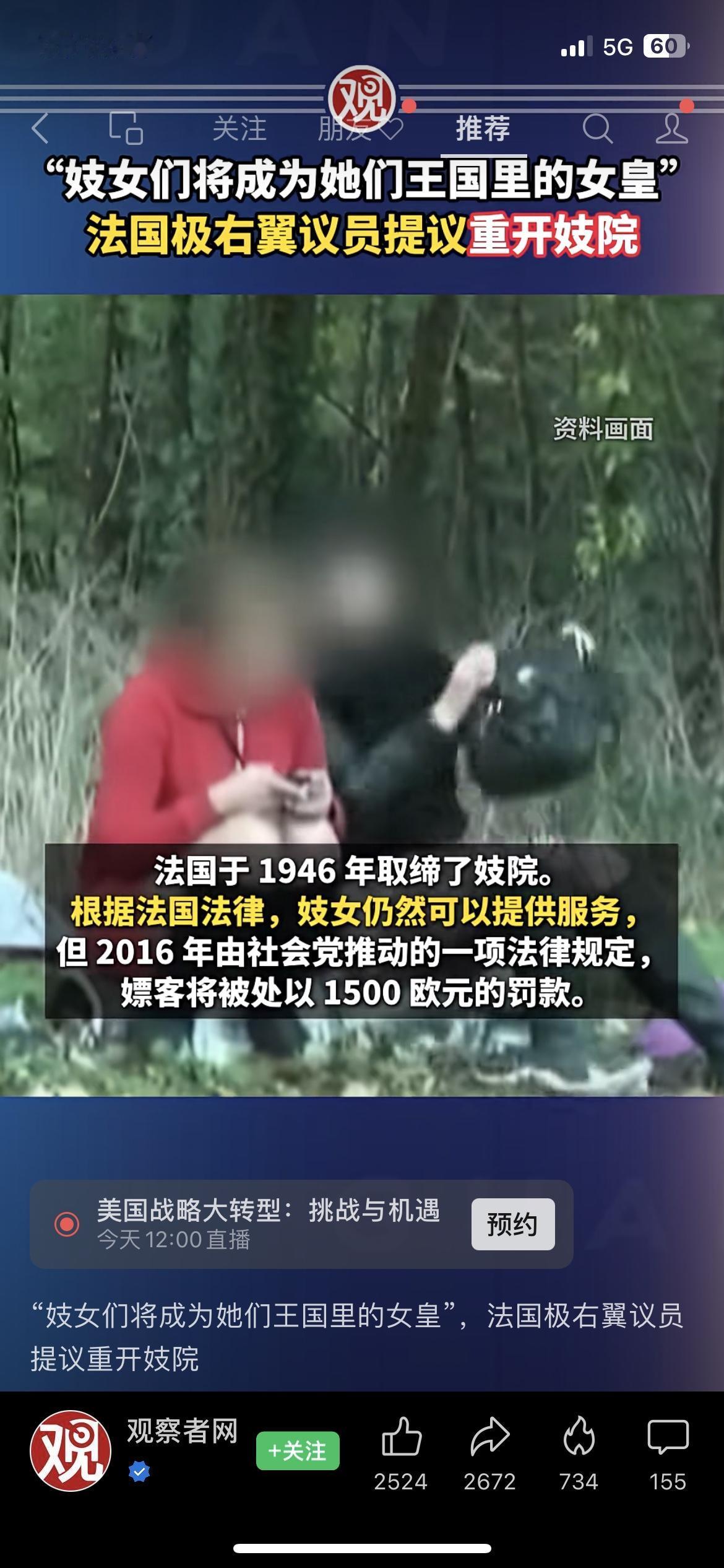 太离谱了!法国出争议提案引众怒,网友吵疯了👇 12月9日据权威媒体报道,法国极右翼政党议员提交提案,建议以合作社形式重开妓院,甚至称从业者将成为“王国女皇”。要知道法国早在2003年就立法禁止妓院经营,该提案一经提出,立刻引爆伦理与法律层面争议,欧盟多国也随之掀起相关讨论,目前提案暂未落地但热度居高不下。 这提案简直颠覆认知!你支持重开妓院吗?为啥?评论区说说~法国政治制度 法国乱象