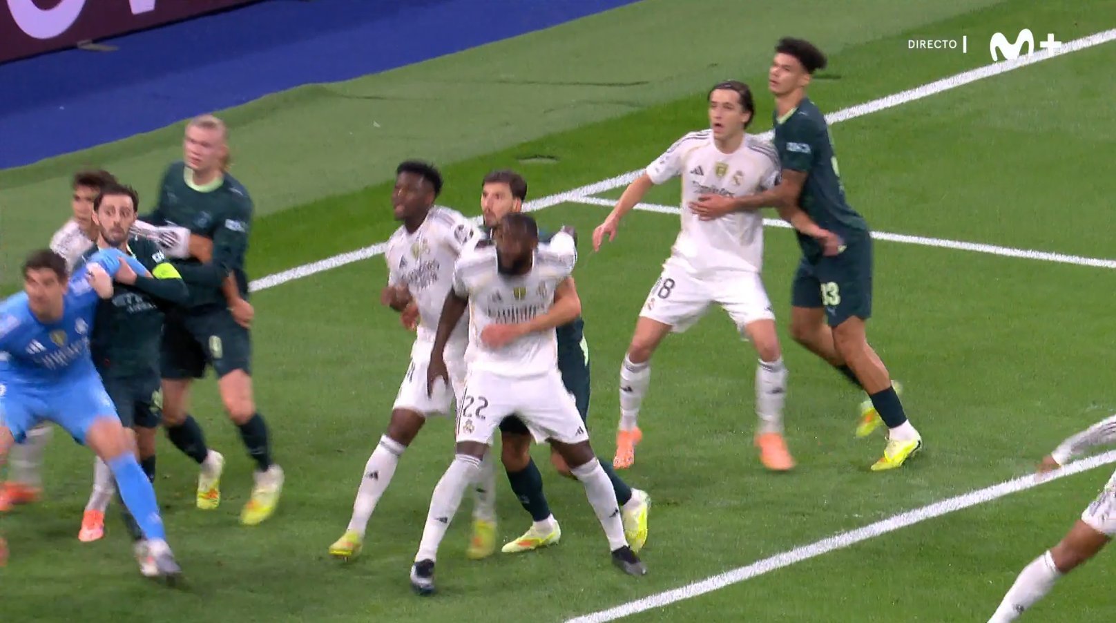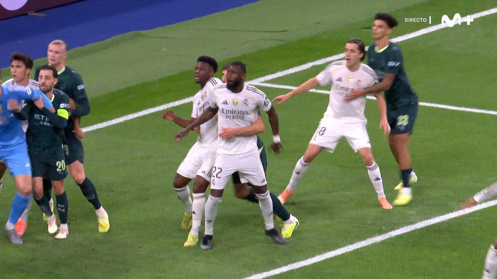 【Archivo VAR】🖥️💥 视频助理裁判漏判了曼城首粒进球前的一次犯规。👉🏻 贝尔纳多・席尔瓦多次抓住库尔图瓦的手臂,阻碍他上前争抢皮球。❌ 这属于犯规。▪️ 视频助理裁判当时将注意力集中在了鲁本·迪亚斯与吕迪格之间的对抗上。