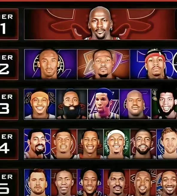 最近有媒体给出了一张联盟历史上最伟大单挑排行榜单 榜单一共分1-5档 第一档只有1人,那就是迈克尔-乔丹。 第二档则有科比、杜兰特和艾佛森三人 第三档中我们能看到哈登、安东尼、奥尼尔等球员。 第四档欧文、麦迪、诺维茨基、保罗-皮尔斯等球员入选。 第五档则拥有东契奇、德罗赞等球员,不过很多球迷对这份榜单表示有很大疑问,为什么亚历山大没有进入排行榜之内,还有湖人队的勒布朗-詹姆斯,也没有在上面看到他的名字!