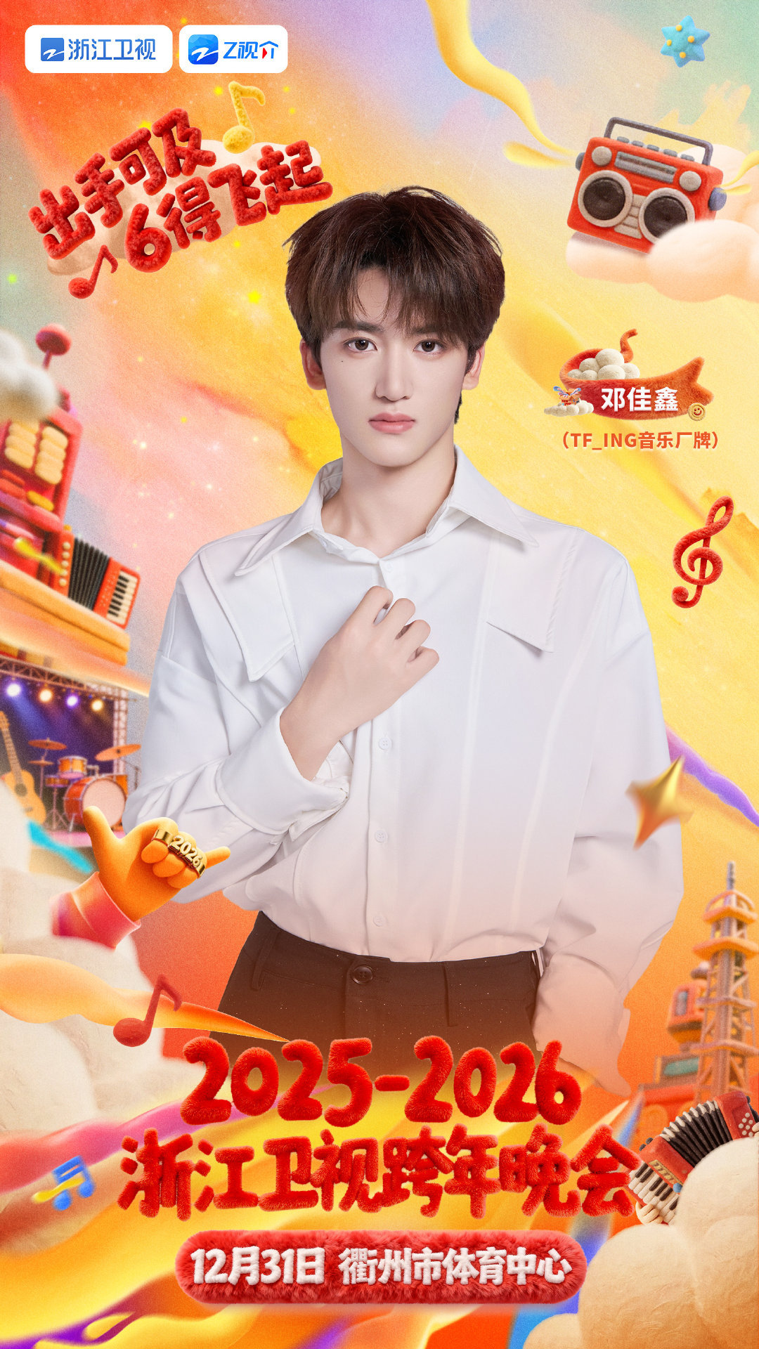 TFING再登浙江跨晚舞台浙江卫视跨年晚会 舞台王者,强势返场!TFING组合携无限能量登陆浙江卫视跨年。这一次,他们将用更成熟的表演,点燃衢州体育中心的夜空。12月31日,不见不散!
