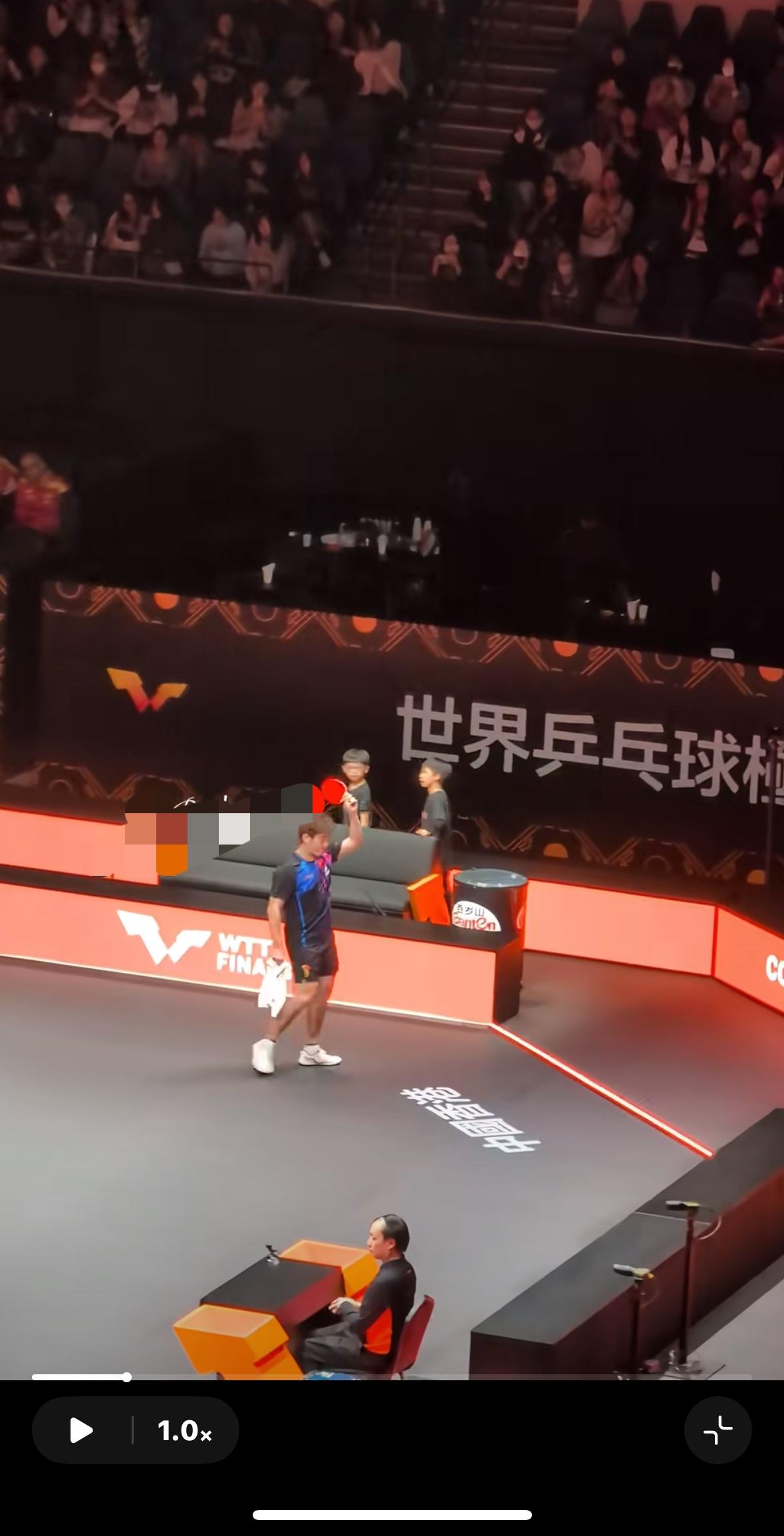 香港总决赛梁靖崑0:4林诗栋后举起球拍向观众挥手致意 12月11日,WTT香港总决赛, 男单1/8决赛中, 梁靖崑0:4梁靖崑,首轮出局! 梁靖崑带伤作战, 腰伤,明显用不上力! 他是想留着身体打明年的 世乒赛男团比赛, 梁靖崑现在是放弃个人荣誉, 拼尽全力保护团体荣誉, 因为他的身体只允许他 选择性拼命! 为国而战的梁靖崑真的很棒![赞][赞][赞][赞][赞][赞]