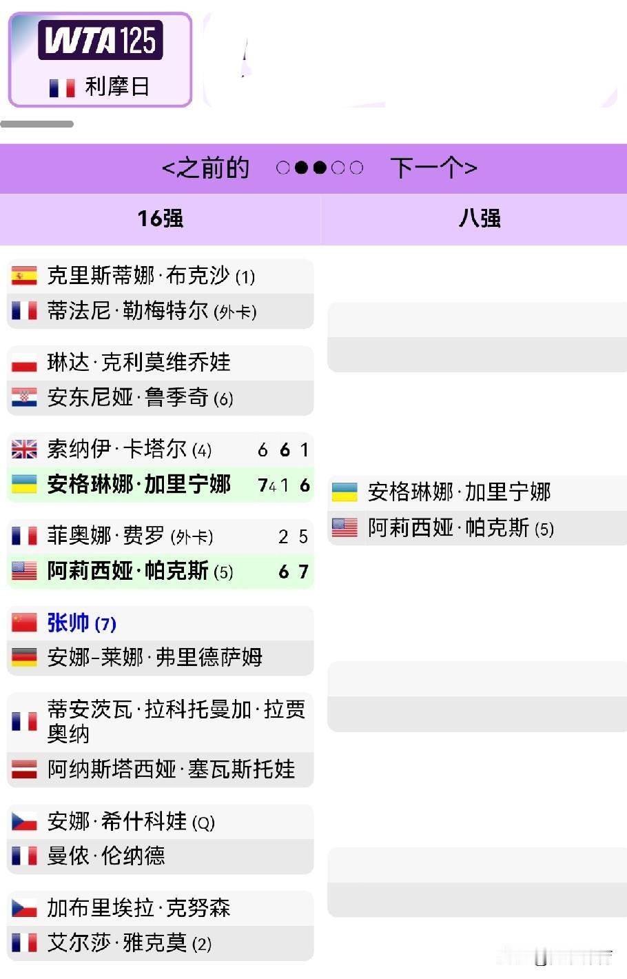 张帅:孤独的女战士 大部分WTA巡回赛的选手已经结束了2025年的赛程,正在蓄力准备新的赛季。然而,中国选手张帅依旧奔波于低级别赛事的赛场。 在W125法国利摩日的首轮比赛中,她作为唯一一名来自东半球的球员,她显得尤其孤独,但是,她以两个6-2战胜了意大利选手卢克雷齐娅·斯特凡尼尼 。她将与德国姑娘安娜-莱娜·弗里德萨姆争夺一个八强席位。后者以6-3、6-2战胜了波兰人卡塔琳娜·卡瓦 。