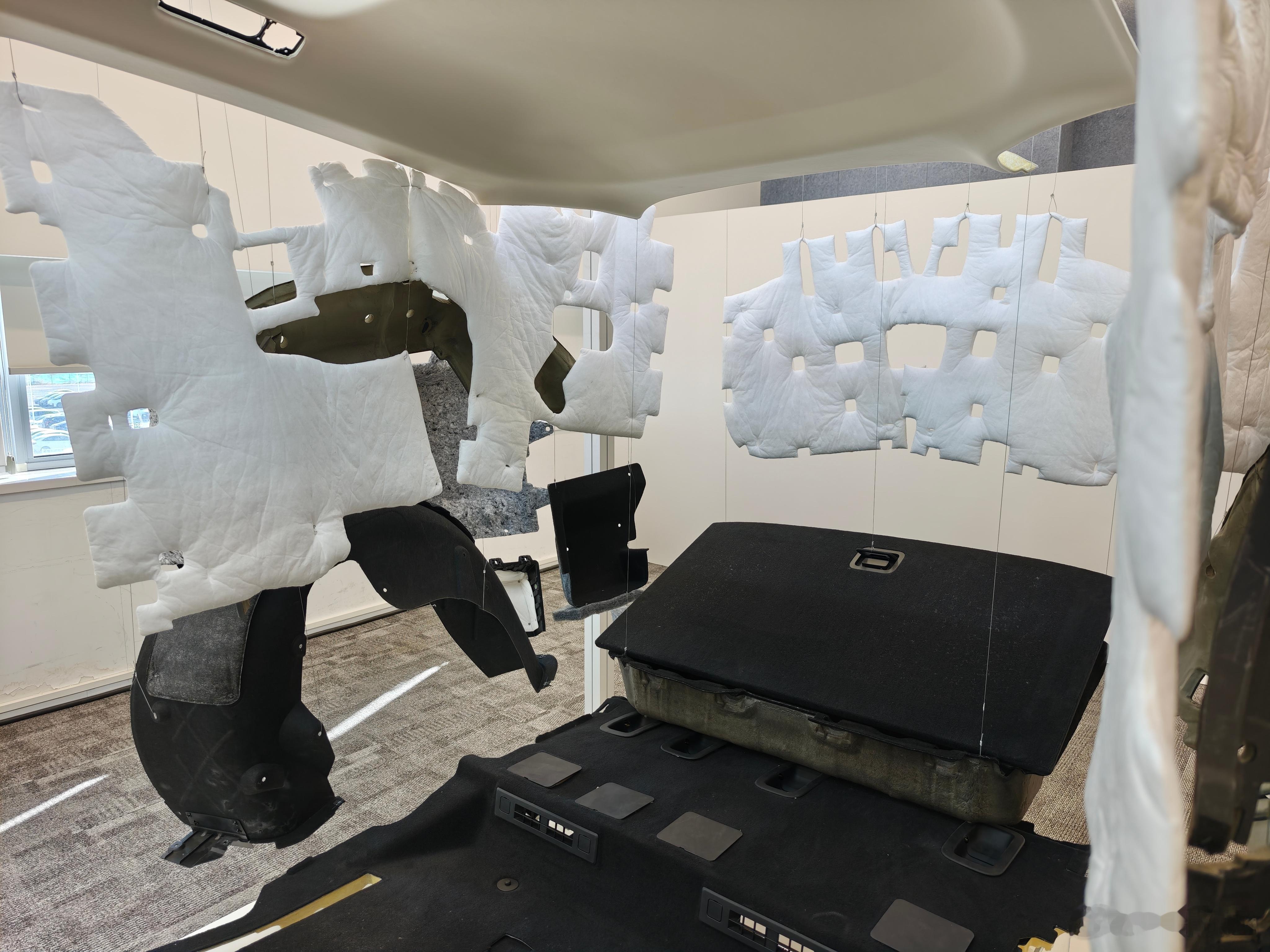 理想MEGA车身上的隔音材料有这么多!第三排都用了很多隔音棉,隔音好,很多时候是就要用钱堆出来的,而这些在配置表上很难体现。贵,有贵的道理。2025理想材料研发成果大盘点
