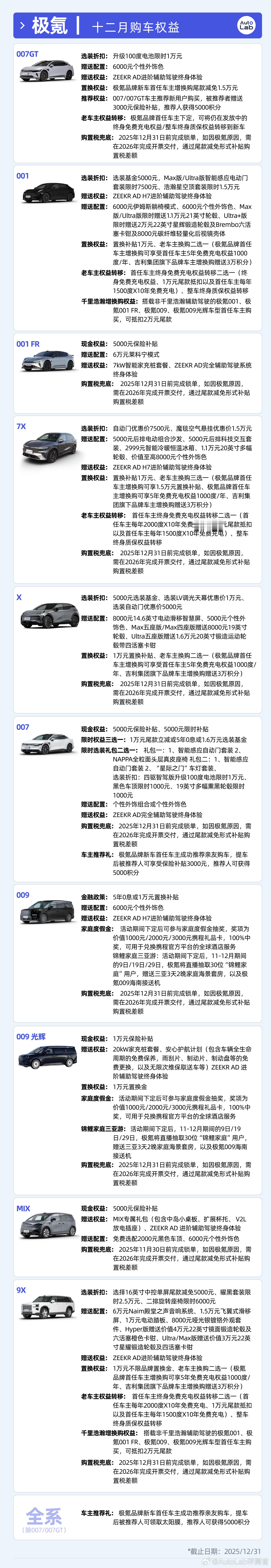 我们整理了12月各大车企的购车权益,希望能够给到最近有购车需求的朋友的一定的参考大V聊车