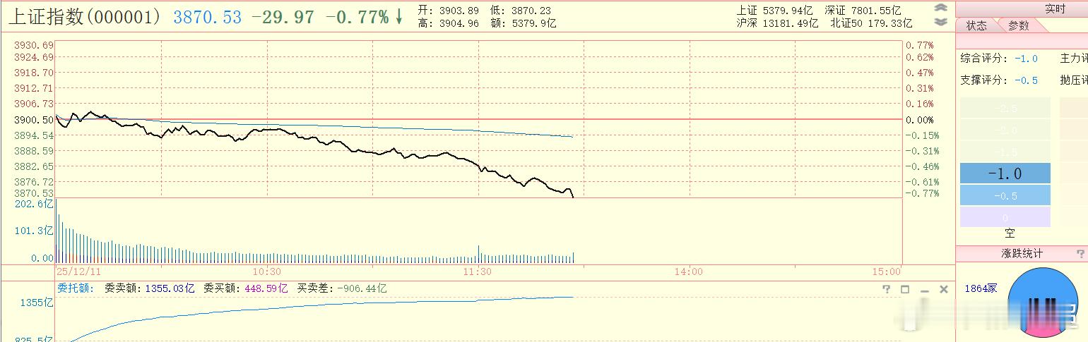 大单没有继续砸,主力等级从-A回到-B,但指数被分时均线压制死死的,到下午盘如果