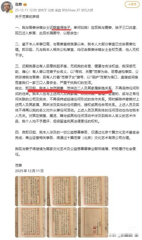 比张纪中还牛的老头出现了 画家范曾87岁公布自己喜得独子 还说要和女儿继子断绝关系! 之前传他的37岁小娇妻搬空他豪宅中收藏字画、古董,总价值超20亿。 他这次发文也澄清了:是和小娇妻搬新家了。 87岁生孩子,是用了科技手段? 没想到他结婚四次,最后被小娇妻拿捏的死死的。