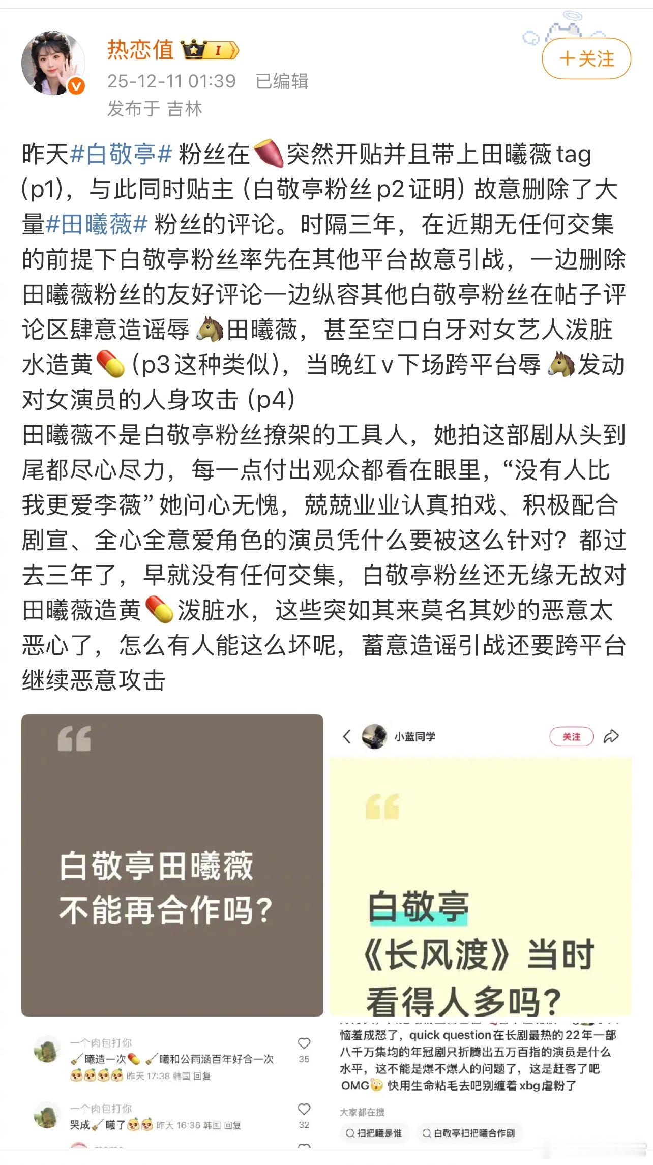 田曦薇粉丝和白敬亭粉丝突然交流起来了田曦薇白敬亭粉丝
