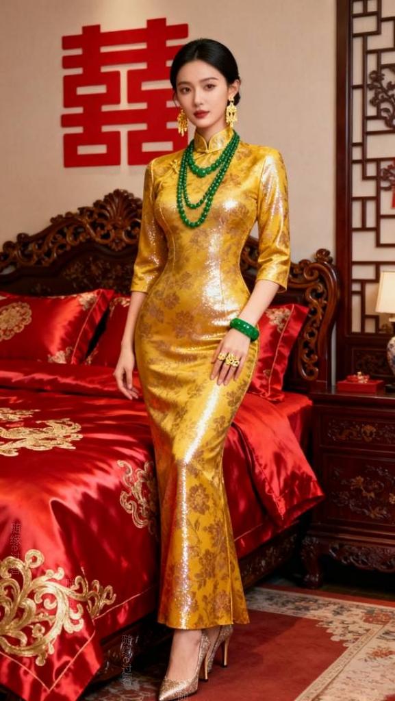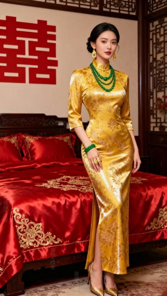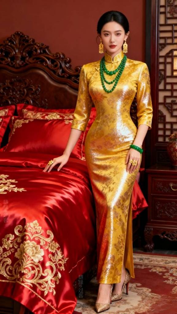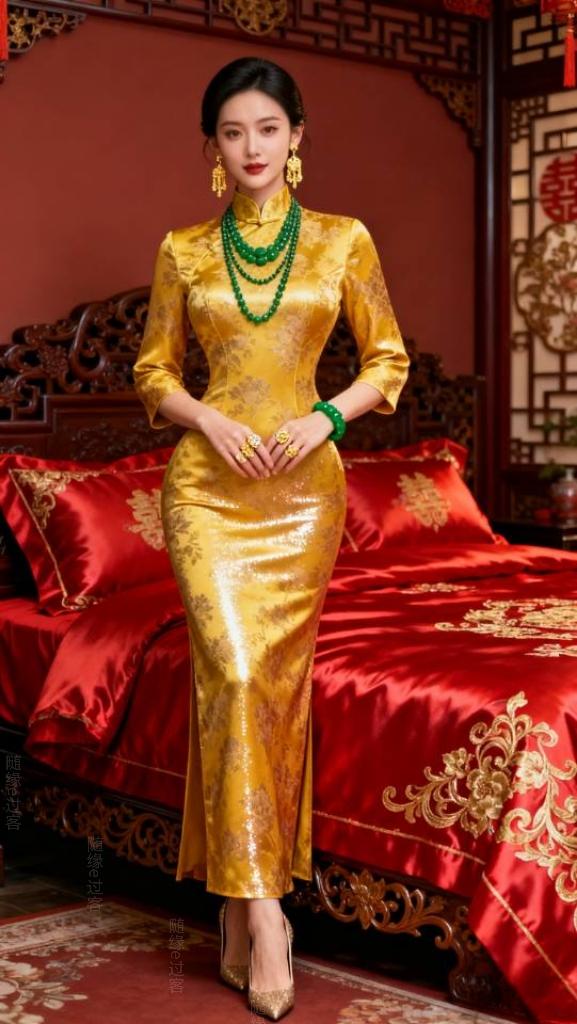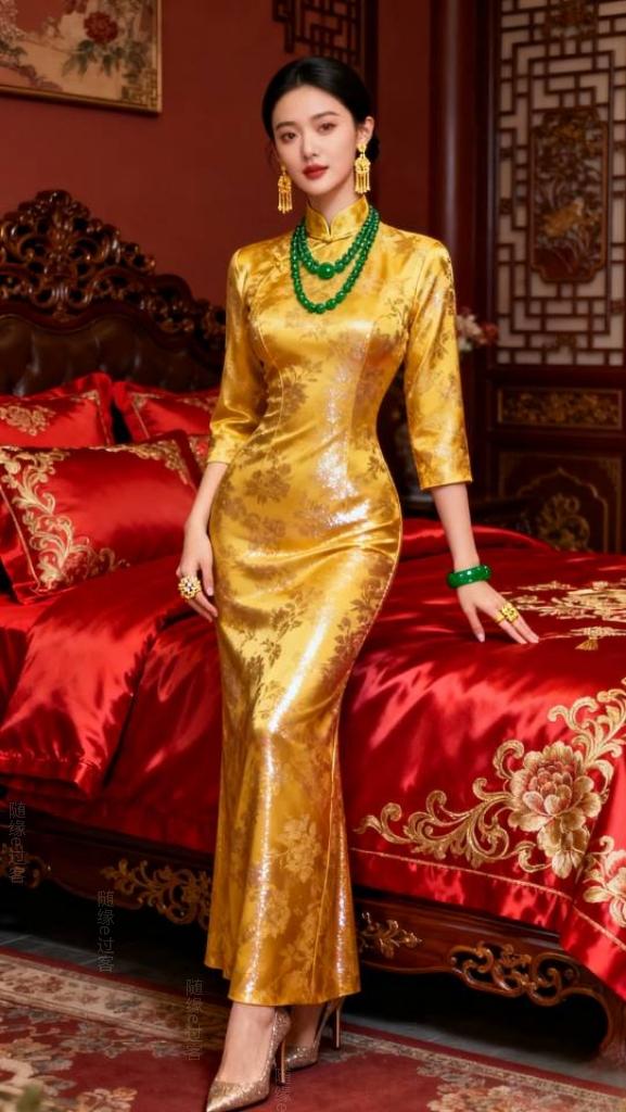 女子买了一件旗袍,看着非常的漂亮,于是赶紧穿上了旗袍,想着和家人分享自己的