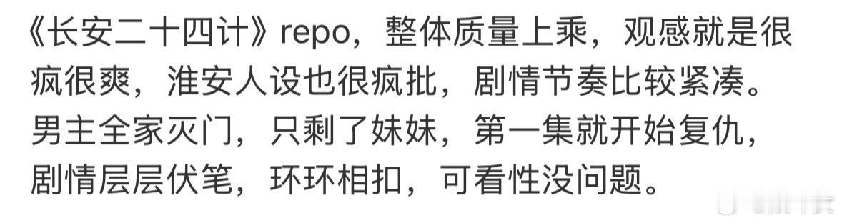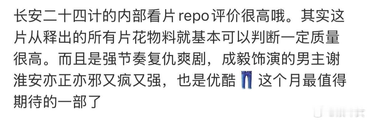 长安二十四计看片会repo《长安二十四计》的画面质感真的很在线,肉眼可见的精致用心,每帧画面都很有质感,观感特别舒服,明天上👖看正片长安二十四计