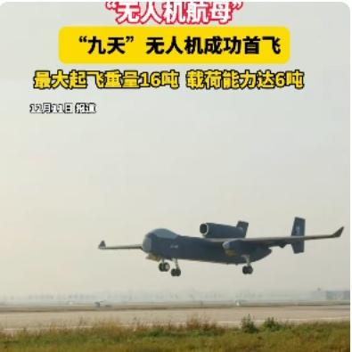 国产大型无人机“九天”首飞圆满成功!16吨级硬核装备解锁低空经济新玩法,性能参数直接拉满。这款自主创新的无人机由陕西无人装备科技委托、航空工业一飞院设计,今日在陕西蒲城顺利完成首飞,标志国产大型无人机技术再攀新高峰。机身数据超亮眼,机长16.35米、翼展25米,最大起飞重量16吨,载荷能力达6000千克,航时足足12小时,转场航程更是冲到7000千米,同类产品里妥妥的佼佼者。采用“通用平台+模块化任务载荷”设计,堪称低空领域“全能多面手”,重型物资运输、应急救援、地理测绘等民用场景全适配,实用价值拉满。它的成功首飞给低空经济注入强动能,新质生产力发展再添硬核助力,未来会深度融入各类民生和生产场景,带来更多实用便利。国产科技装备持续发力,硬核实力肉眼可见,这样的国之重器超提气。大家觉得这款无人机后续最该先投入哪个场景?是应急救援还是物资运输?评论区说说你的看法!