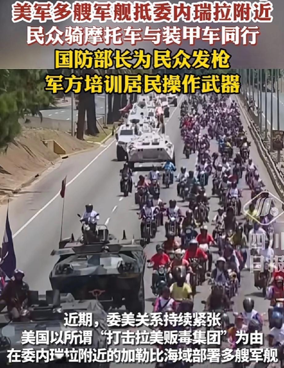 委内瑞拉现在是全民皆兵,不管是老人、妇女,都拿上了枪杆子。 为了保卫自己的家园,美国横行霸道,为了利益,能源。切断委内瑞拉与中俄两国的合作。不断对委内瑞拉施加压力。甚至强行扣押委方油轮,这一行为,彻底激怒了委内瑞拉全国民众。 这也是美国爱玩的手段,对能源丰富的国家虎视眈眈,找各种理由打击占略。委内瑞拉战局