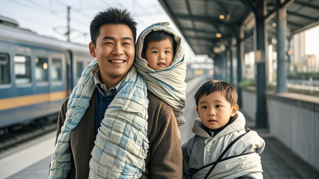 林北扛着“人形行李”憨笑出发 清晨的车站人声鼎沸,林北的身影格外惹眼——他宽厚的肩膀上“扛”着个裹成粽子的小家伙,四岁的侄子搂着他的脖颈,脸蛋埋在绒帽里,只露出一双圆溜溜的眼睛好奇张望。林北双手稳稳托着侄子的腿弯,步伐虽有些笨拙,脸上却挂着藏不住的憨笑,额角的汗珠顺着下颌线滑落,也顾不上擦。 这是侄子第一次出远门,非要黏着林北“骑马马”。林北拗不过小家伙的软磨硬泡,干脆把他当成“人形行李”扛在肩头,既安全又满足了孩子的好奇心。路过的行人纷纷侧目,有阿姨笑着打趣:“这行李还会动呢!”林北挠挠头,笑得更憨了:“咱这是专属座驾,限量版!” 候车时,侄子不安分地揪着他的耳朵玩,林北耐心地哼着儿歌安抚,从背包里掏出零食小心喂到孩子嘴边。检票铃声响起,他收紧手臂托稳侄子,迈着坚定的步伐走向站台。阳光洒在他宽厚的背影上,“人形行李”突然在肩头咯咯直笑,林北回头望了一眼,眼底满是温柔。 这场特殊的出行,没有精致的行囊,却装满了沉甸甸的疼爱。林北扛着的不仅是活泼好动的侄子,更是长辈对晚辈最纯粹的呵护,那抹憨笑里,藏着最动人的温情与担当。 需要我把这个场景扩展成800字的记叙文,补充更多旅途细节和人物互动吗?