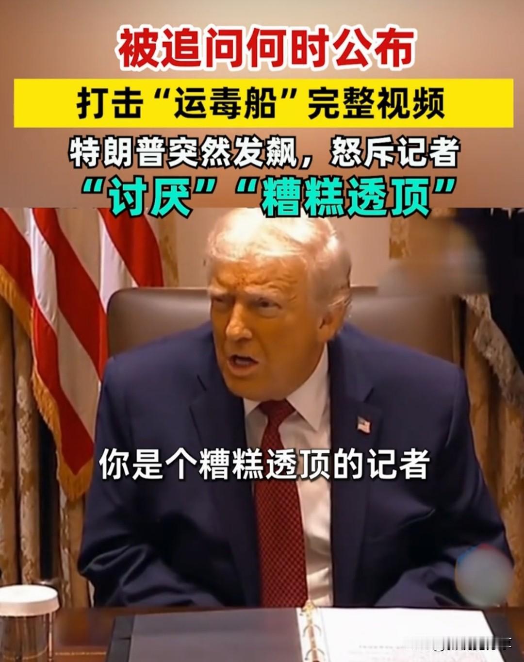 特朗普被追问“运毒船”视频时发飙: 这事儿得从三个月前的一场“打击行动”说起。今年9月,美军在加勒比海盯上了一艘所谓的“运毒船”,先是发射导弹炸了一轮,后来发现船上还有两个幸存者,居然又补了一轮攻击——最后船沉了,11个人全没了 。更让人炸锅的是,有消息说国防部长当时亲口放话“不留一个活口”,这消息一出来,美国上下都吵翻了。 按说打击贩毒是好事,可“赶尽杀绝”的做法实在说不过去。国会里两党议员都坐不住了,有人直接说这可能犯法了,逼着政府公开完整视频,想看看到底咋回事 。之前特朗普被问起这事儿时,拍着胸脯说“有视频肯定公开,没问题”,那态度看着特爽快。 结果12月8号一开会,美国广播公司的女记者较真了,当场追问他“说好的公开视频,啥时候兑现啊?”这下特朗普立马变脸了,不光不接话,还直嚷嚷“我从没说过这话,这是假新闻!” 。记者也是实在,接着追问了一句,特朗普直接炸毛,指着人家骂“你真是最讨人嫌的记者,糟糕透顶!”那场面,跟咱平时见着有人被戳穿谎话急眼了一模一样。 更有意思的是,这视频其实已经有议员偷偷看过了。众议院有个叫海姆斯的议员说,视频里美军足足打了4轮,那些人根本没反抗能力,看完心里特别不是滋味,直呼这是“最让人不安的事儿” 。现在议员们都急了,放话说要是国防部长不交出完整视频,就扣他四分之一的差旅经费——这招跟咱催债时扣押金一个思路,就是逼着对方说实话。 其实了解特朗普的都知道,他一直把“打击毒品”挂嘴边,以前还说要建边境墙挡毒贩,结果墙没起多大用,毒贩改用潜艇、无人机运毒了 。这次本想靠“炸运毒船”立个强硬的人设,没想到玩脱了,把“赶尽杀绝”的画面弄了出来。现在承诺公开又反悔,被问急了就骂记者,反而更让人怀疑这里面有猫腻——是不是视频里有见不得人的镜头,怕公开了没法收场? 这事儿说白了,就跟咱身边那种“吹完牛圆不上”的人一样,要么别把话说太满,说了就得认。要是真没猫腻,大大方方把视频放出来,反而能堵住悠悠众口;可现在又是否认又是骂人,反倒把大家的好奇心勾起来了,越藏着越让人多想。 各位读者你们怎么看?欢迎在评论区讨论。