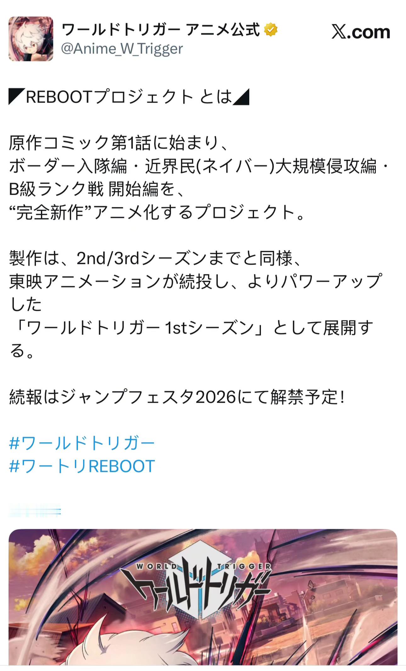 《境界触发者》动画重启计划确认!从原作漫画第一集开始重置,完全新作动画