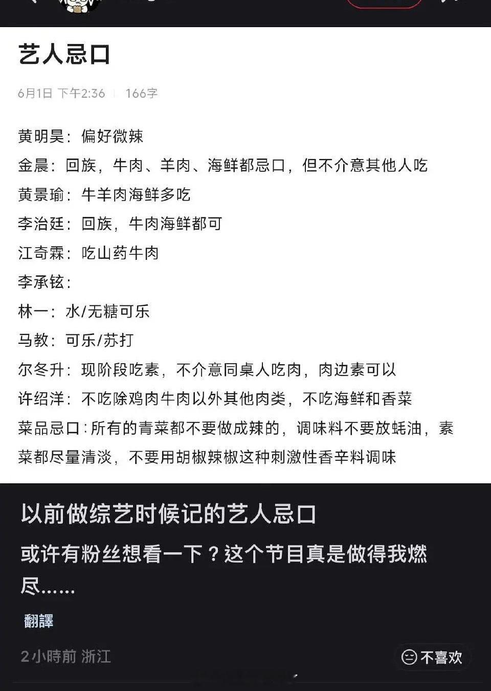 艺人忌口记录,黄景瑜的“多吃”在这个图里面格格不入
