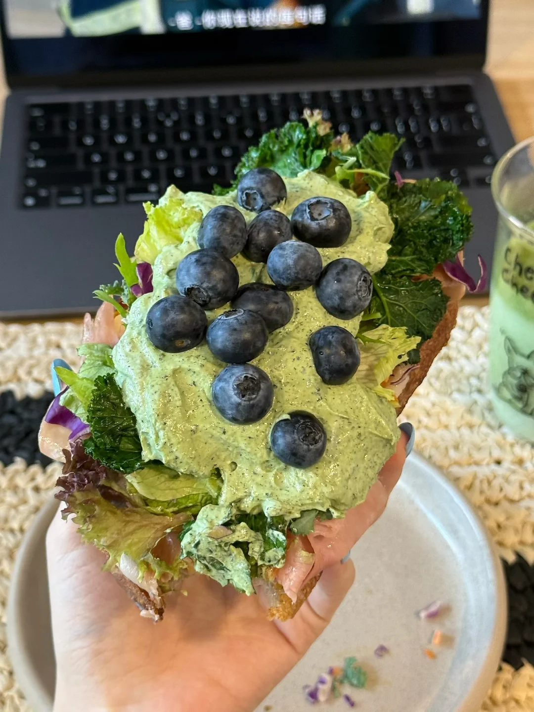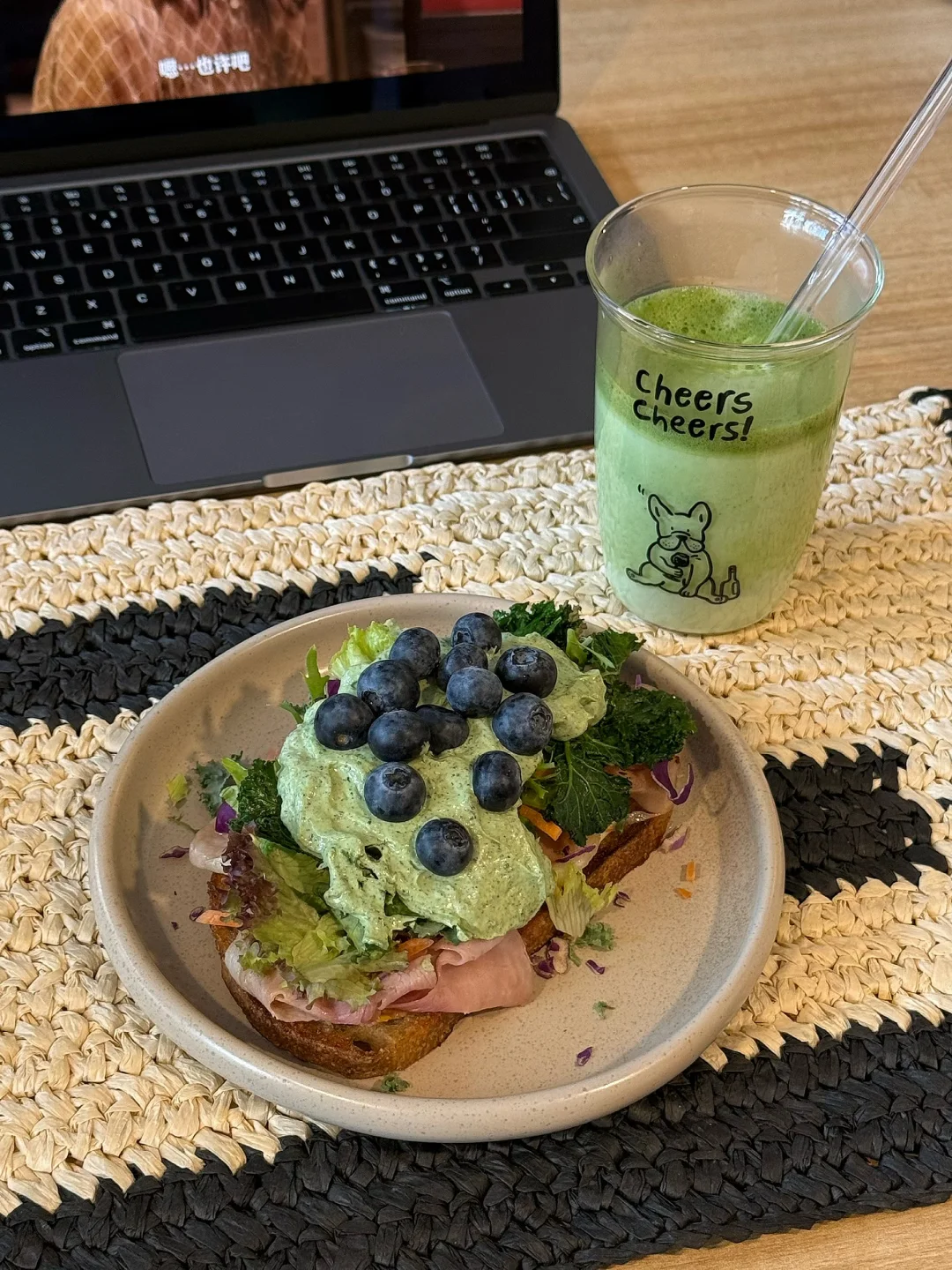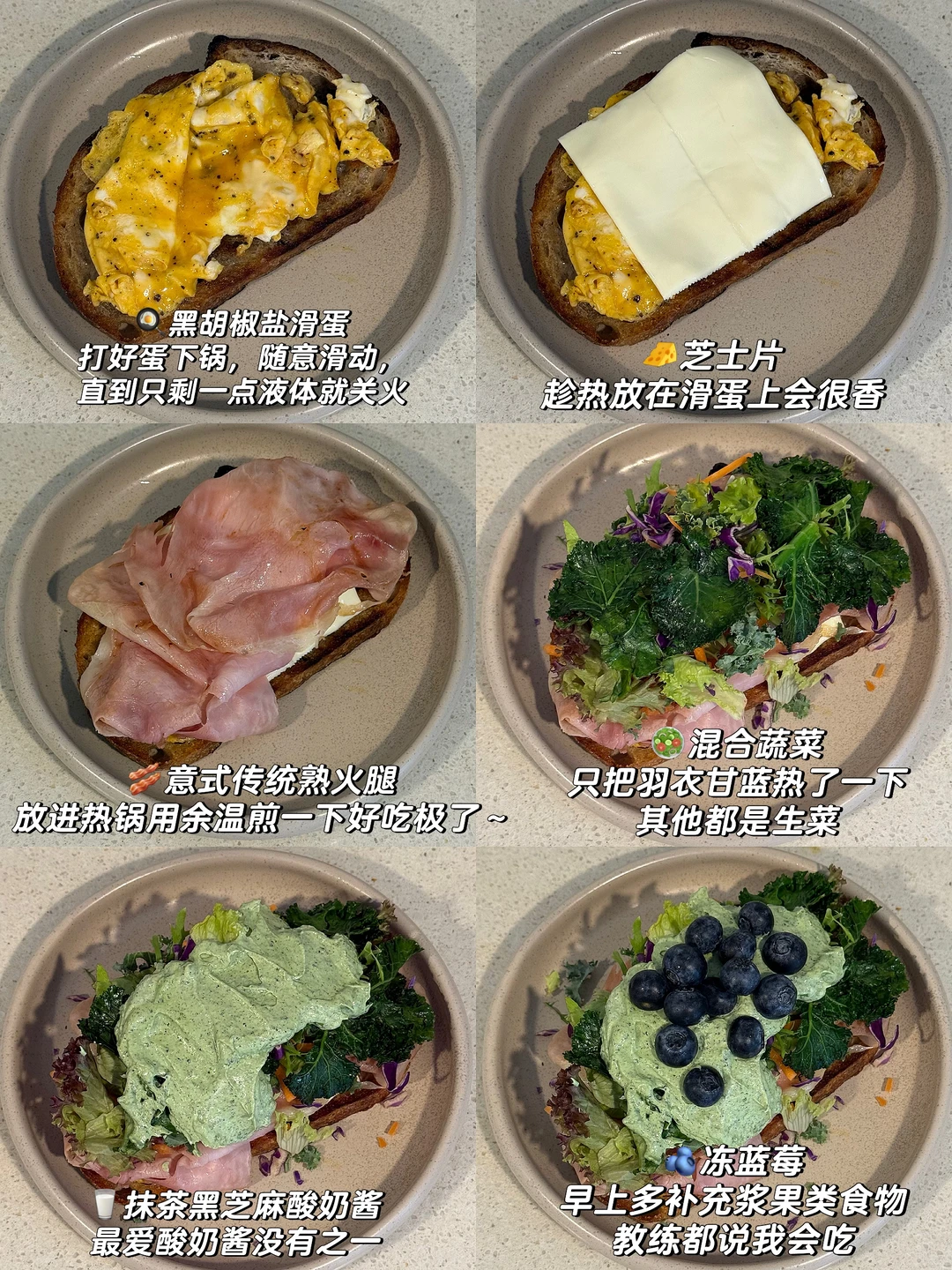 📍佛系养生D25 初始:56.6kg 今早:54kg 3分练7分都得靠吃!吃好才美好! 【早餐】 🍞纯鲁邦乡村,亚麻籽油直接淋到面包上煎烤,就能得到一块又香又脆的乡村欧包! 🍳黑胡椒盐滑蛋,打好蛋下锅,随意滑动,直到只剩一点液体就关火! 🧀芝士片趁热放在滑蛋上会很香 🥓意式传统熟火腿,放进热锅用余温煎一下好吃极了~ 🥗混合蔬菜,只把羽衣甘蓝热了一下,其他都是生菜 🥛抹茶黑芝麻酸奶酱,最爱酸奶酱没有之一 🫐冻蓝莓,早上多补充浆果类食物,教练都说我会吃 🍵抹茶杏仁饮