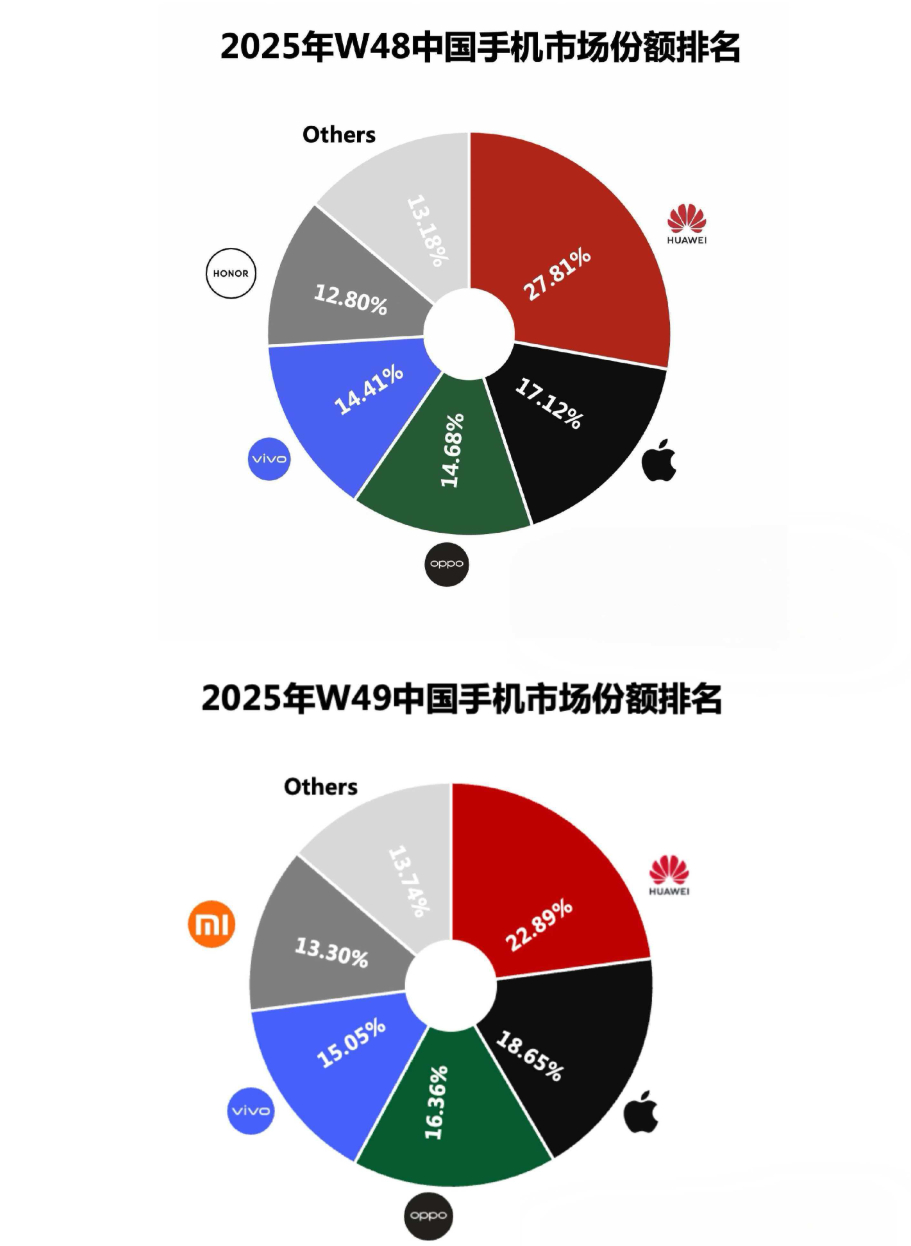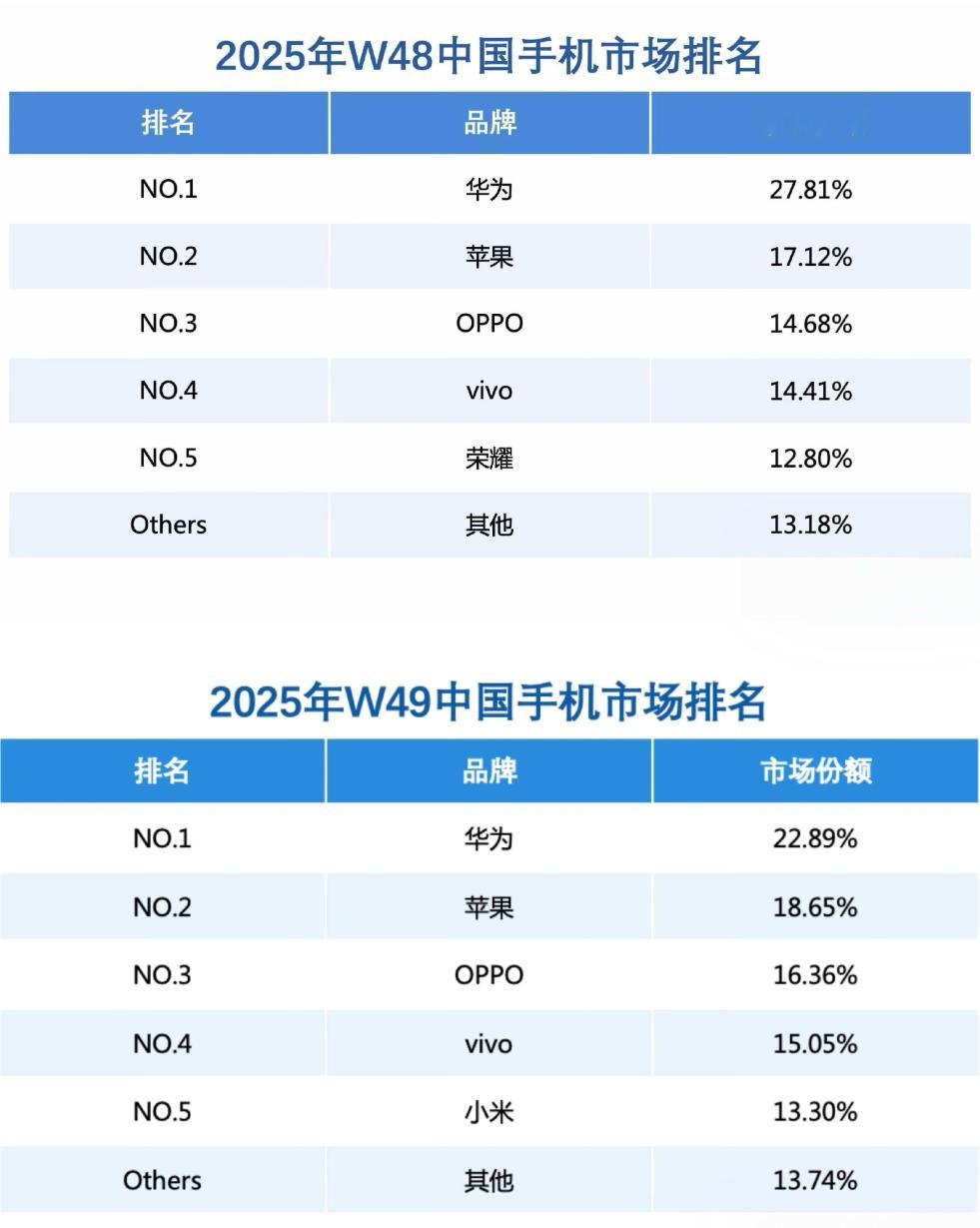 华为重夺中国手机市场份额第一其实华为从来不跟国产手机比,是其他手机一直关注华为的体量,目前根据权威三方机构数据显示,自华为Mate80系列发布以来,华为手机国内市场份额连续2周超越苹果,重夺国内市场份额第一,华为超越苹果胜在体验上,而不是性能上,大家都知道苹果的手机近几年没啥大更新,反而华为从手机形态到OS体验都是非常优秀的,在加上AI的发展,前途无量。