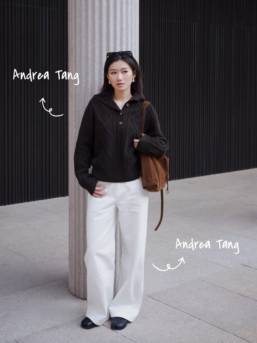 AndreaTang深棕绞花毛衣太有复古vibe,