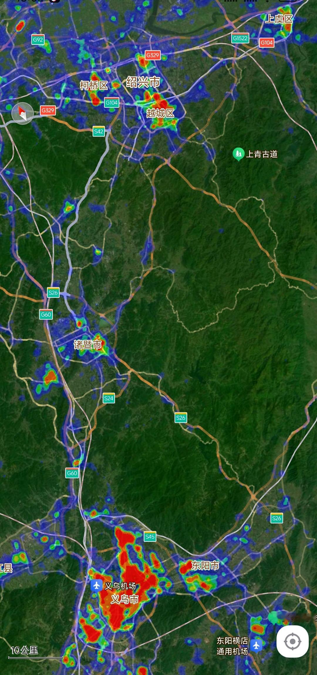 虽然义乌是金华代管的县级市,但是从城市热力图看义乌的繁华程度略胜绍兴市区一筹,对比红色区域面积大小更是清晰直观。 这样看来义乌确实是浙江省发展最好的县级市。同时也能看出东阳与义乌已经实现了同城化,这两个县级市加起来拥有300万常住人口,因此繁华程度略胜绍兴市区一筹自然就不足为奇了。