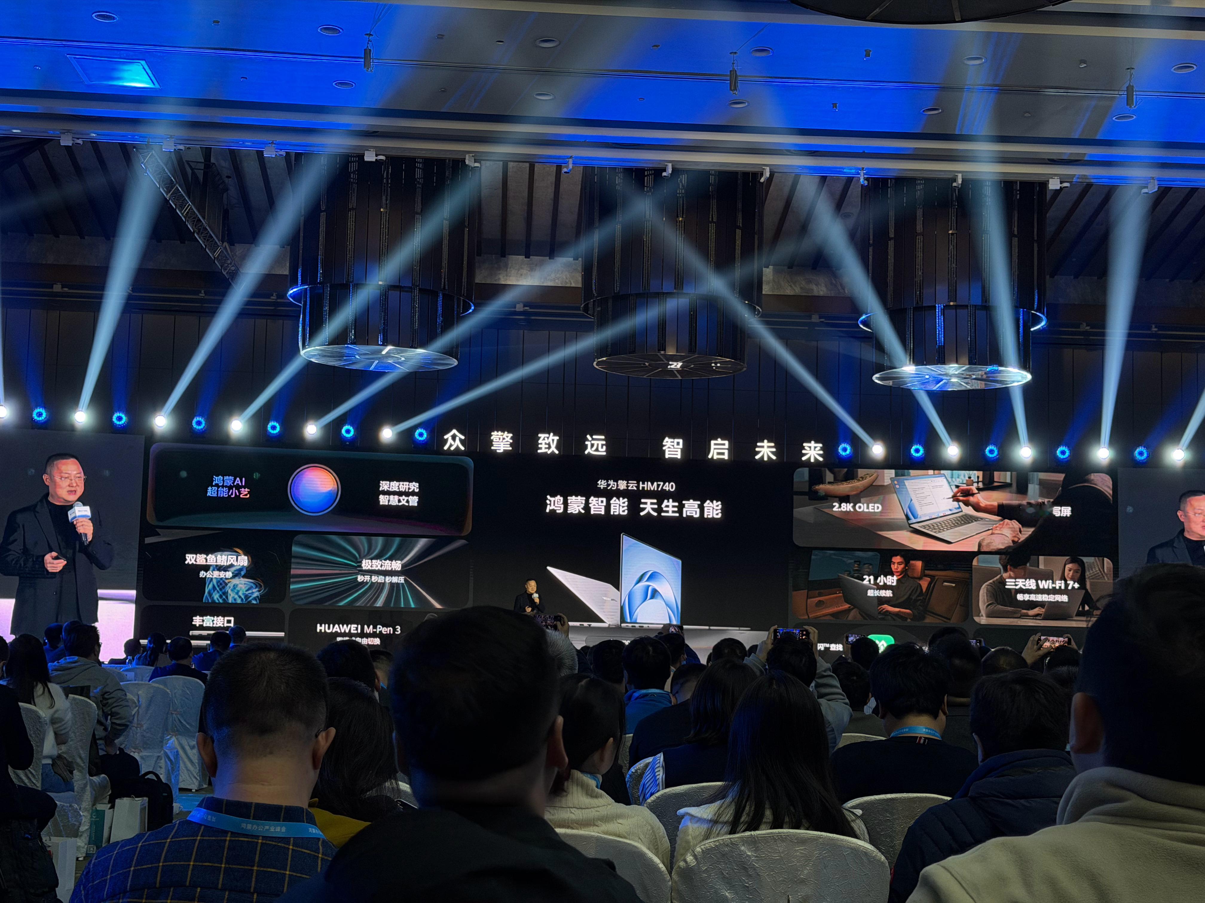 新一代鸿蒙电脑发布 作为新一代鸿蒙电脑,华为擎云 HM740聚焦政企移动办公需求,内置70Wh大容量电池,是华为推出的迄今续航最长的电脑,可实现21小时1080P本地视频播放或15小时语音会议,同时配备丰富接口以支持全场景扩展。搭载2.8K旗舰级OLED屏幕,具备120Hz高刷新率、高色域、高亮度,以及专业护眼能力,支持HUAWEI M-Pen 3多功能笔。凭借从系统到生态的全链路自主可控,华为擎云 HM740为金融、能源、政务等关键行业打造了新一代生产力。