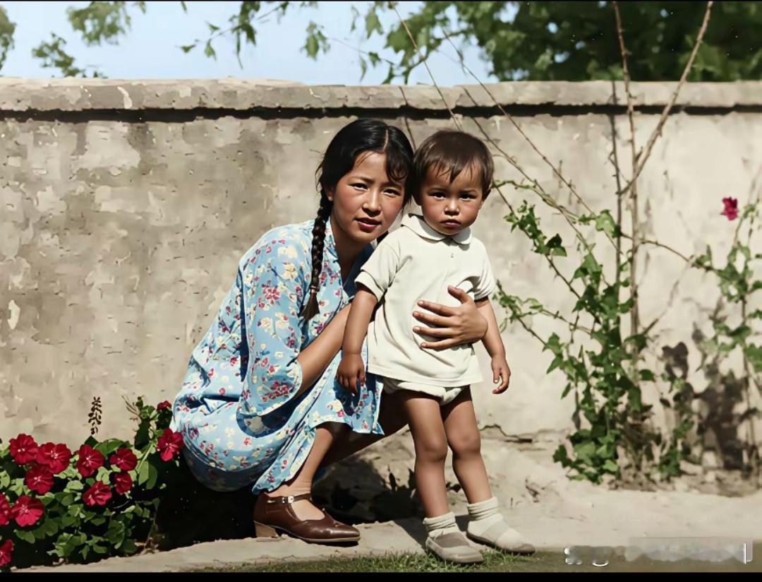 这张照片摄于1930年,记录了林徽因在北平香山养病期间,与约1岁的女儿梁再冰相伴的日常时刻。养病中的林徽因以编着长辫的休闲装扮出镜,着装宽松轻便,她蹲身靠近女儿,轻扶着刚能站立的梁再冰,神态温和舒展,没有病中的沉郁,反而流露着对女儿的温柔关注;1岁左右的梁再冰穿着简单的幼儿衣物,姿态懵懂稚嫩,尽显孩童的天真模样