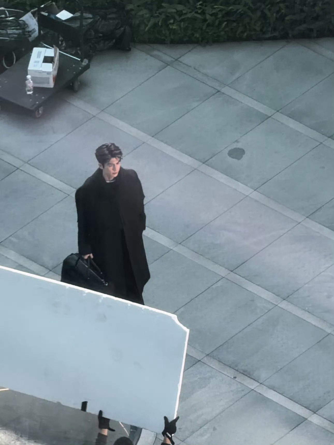 张凌赫在我们公司楼下拍广告张凌赫这黑大衣一穿,直接帅惨了啊!!