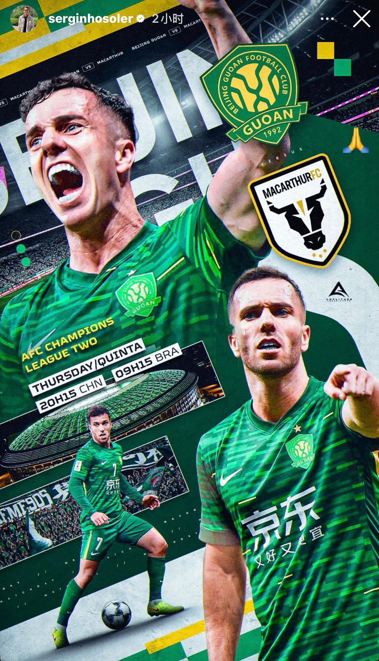 塞鸟发布本赛季最后一场比赛的个人赛前海报,明天结束赛季将返回巴西。(达万已经返回巴西治伤了,今天不踢,所以没发海报)北京国安亚冠二级联赛北京国安vs麦克阿瑟