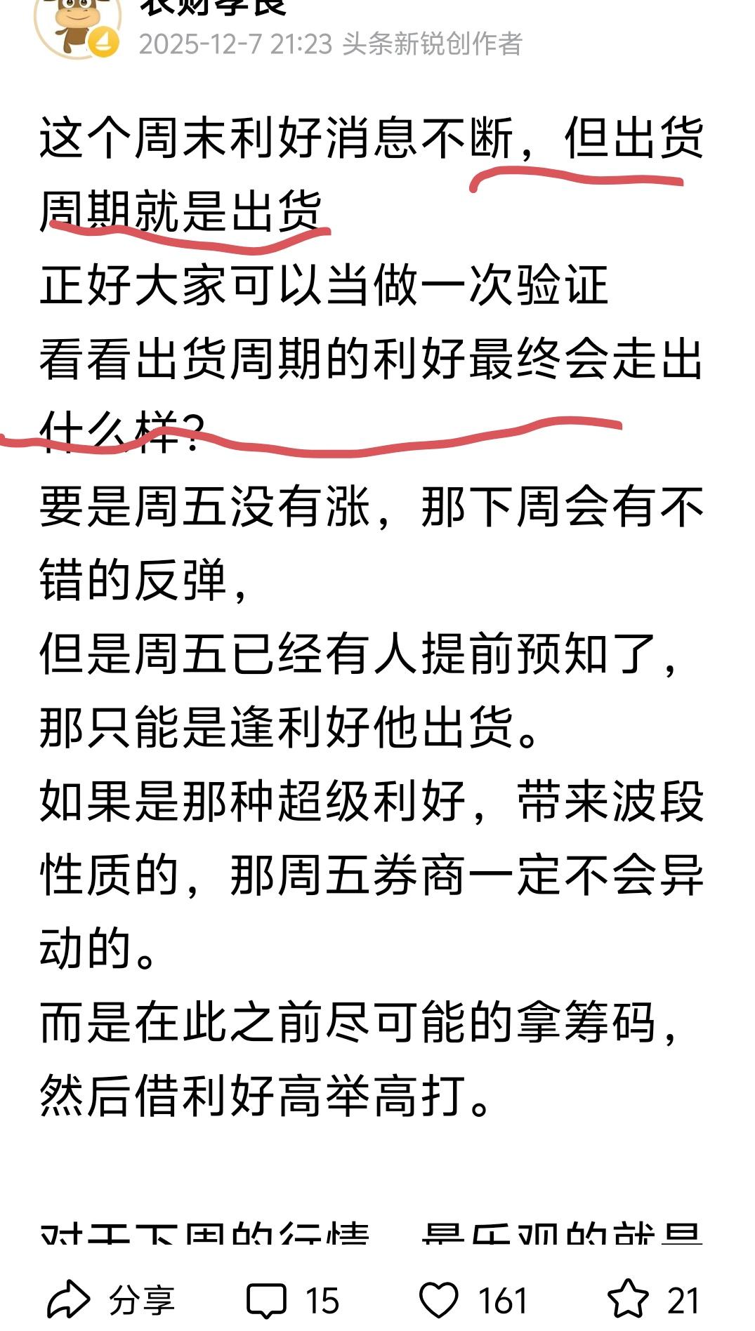 空仓的第8天! 不抄底,出货周期就是出货周期,不以人的意志为转移。 这个位置理应是连跌的,周线收阴。 周末的时候就和大家说,周末这么多利好,大家可以见证一下,调整周期出利好,最终会走成什么样子。 拉证券必须要清仓,为何要这么样做,该理解了吧。 这波下跌比预期要强。上周一不少已经见顶了,跌了几天之后用证券托盘,就是让大家忍一忍,让主力先走。 那这里就会有连跌。 你看我周末画的30分钟见顶趋势图。 在大普跌之前的任何反抽都是诱多。 也就是说大普跌之前不要抄底。 股票建仓时机 市场跟随策略