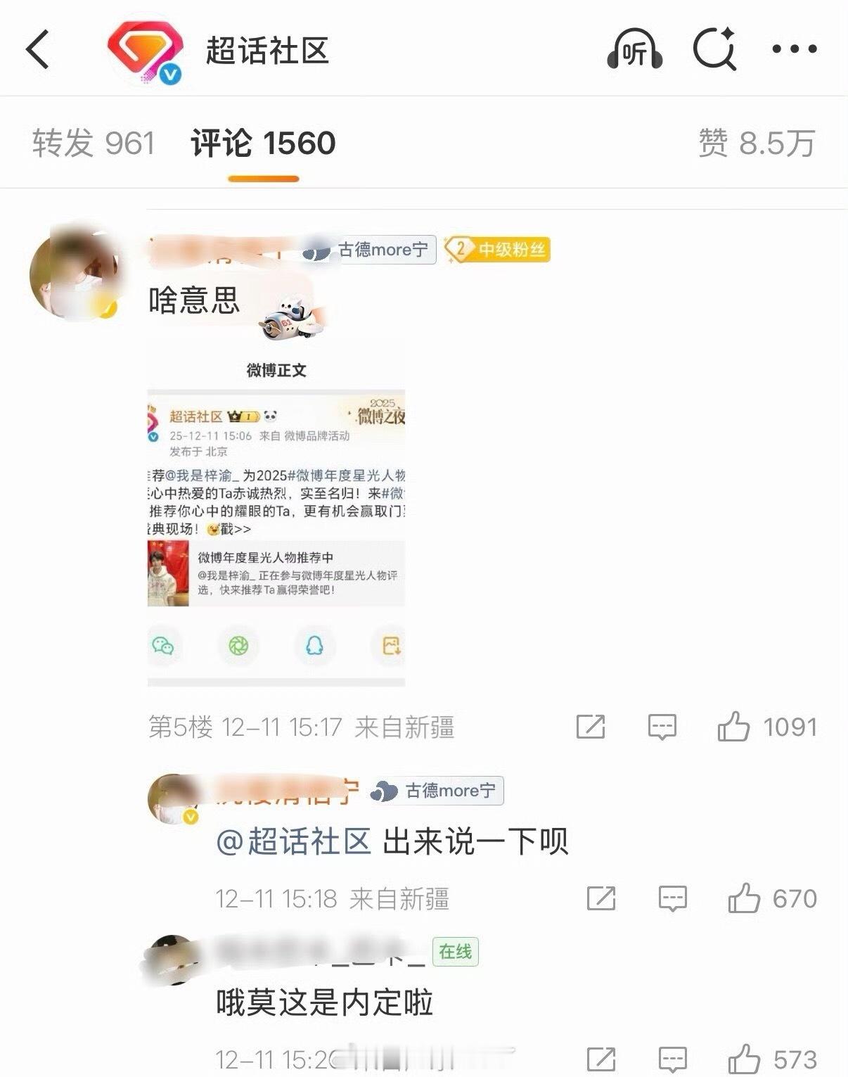 田栩宁粉丝在超话社区的评论质疑投票有问题,什么情况?